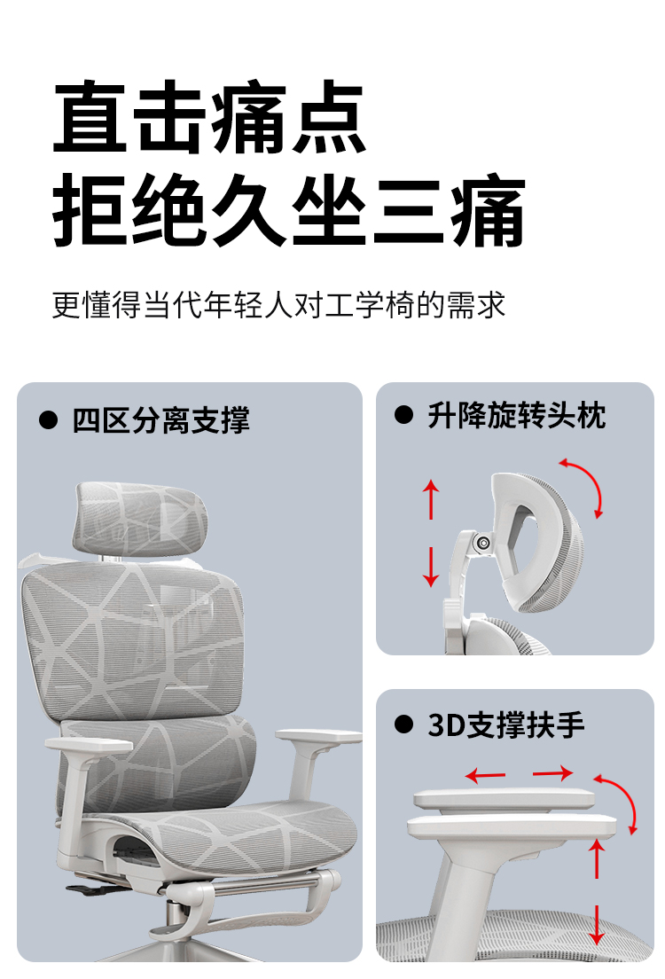 人体工学椅护腰透气靠背电竞椅升降椅办公椅久坐舒适家用电脑椅子
