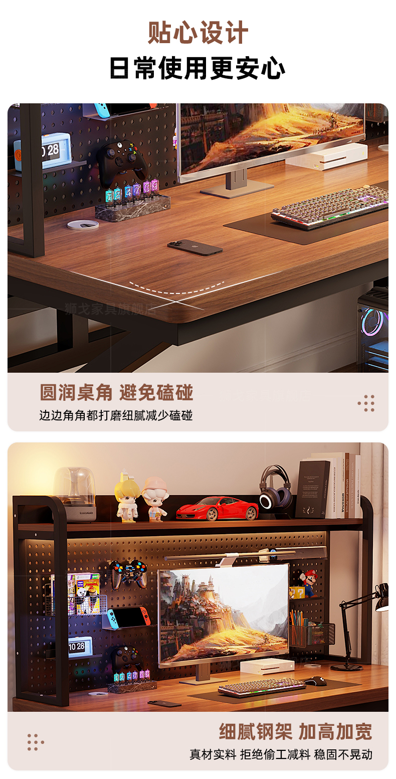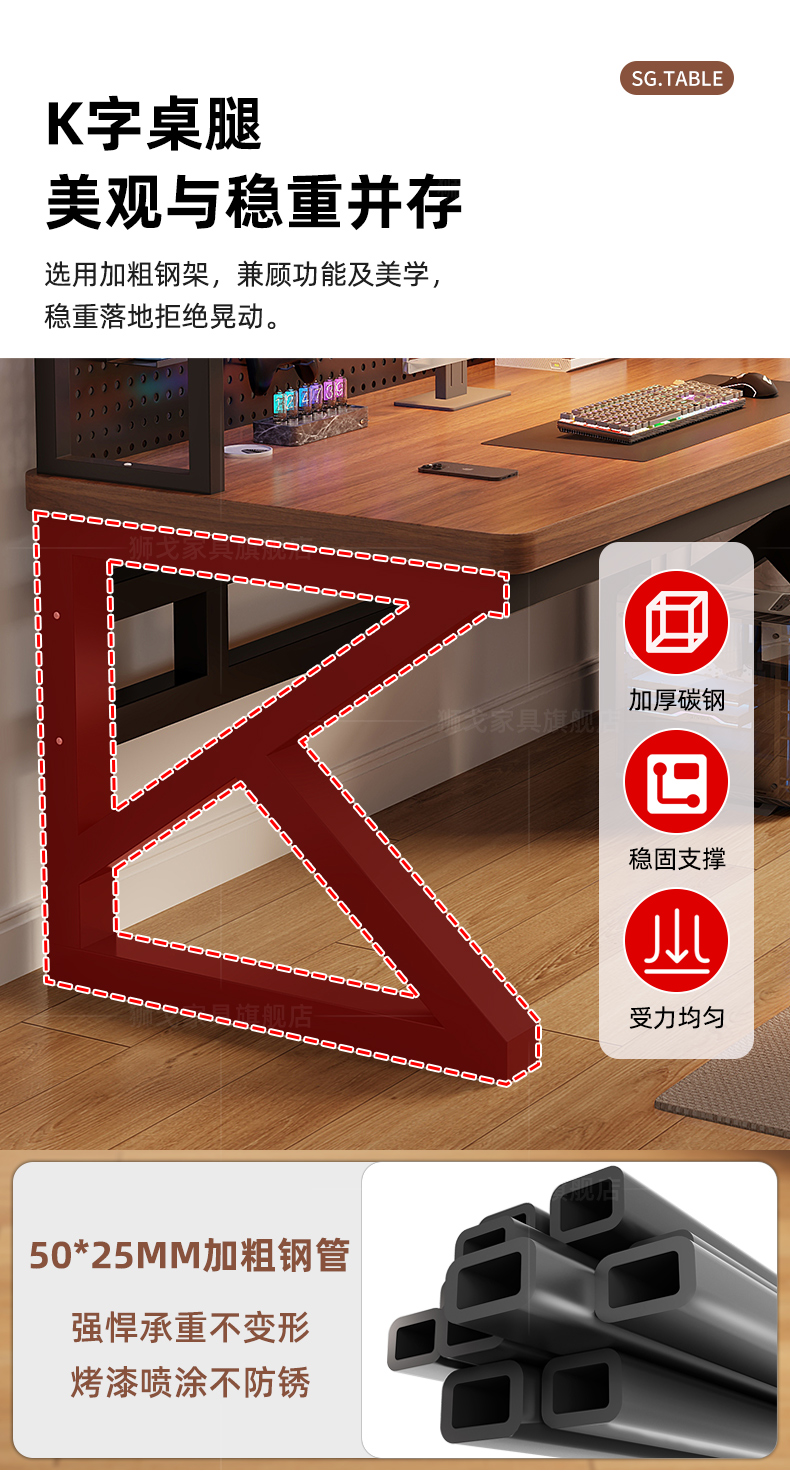 电脑桌台式卧室家用学生学习书桌双人电竞桌可装机械臂碳纤维桌子