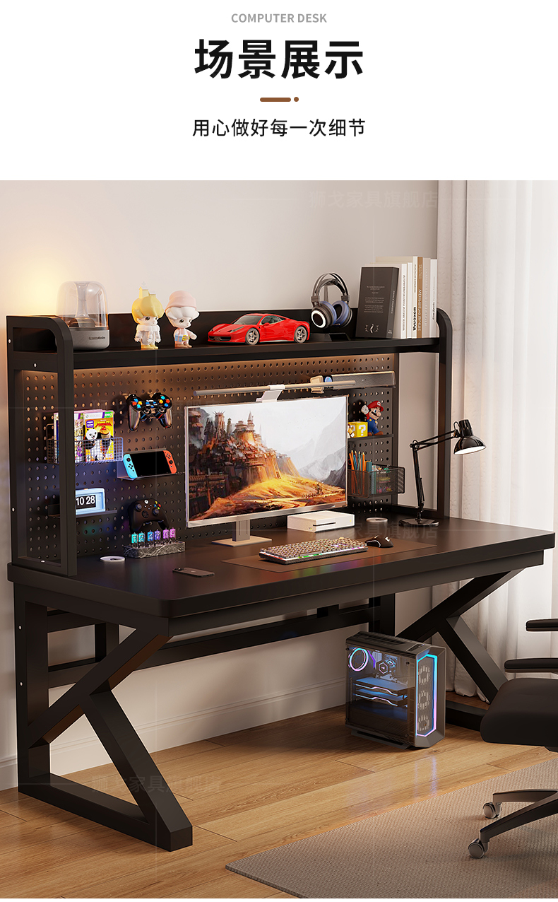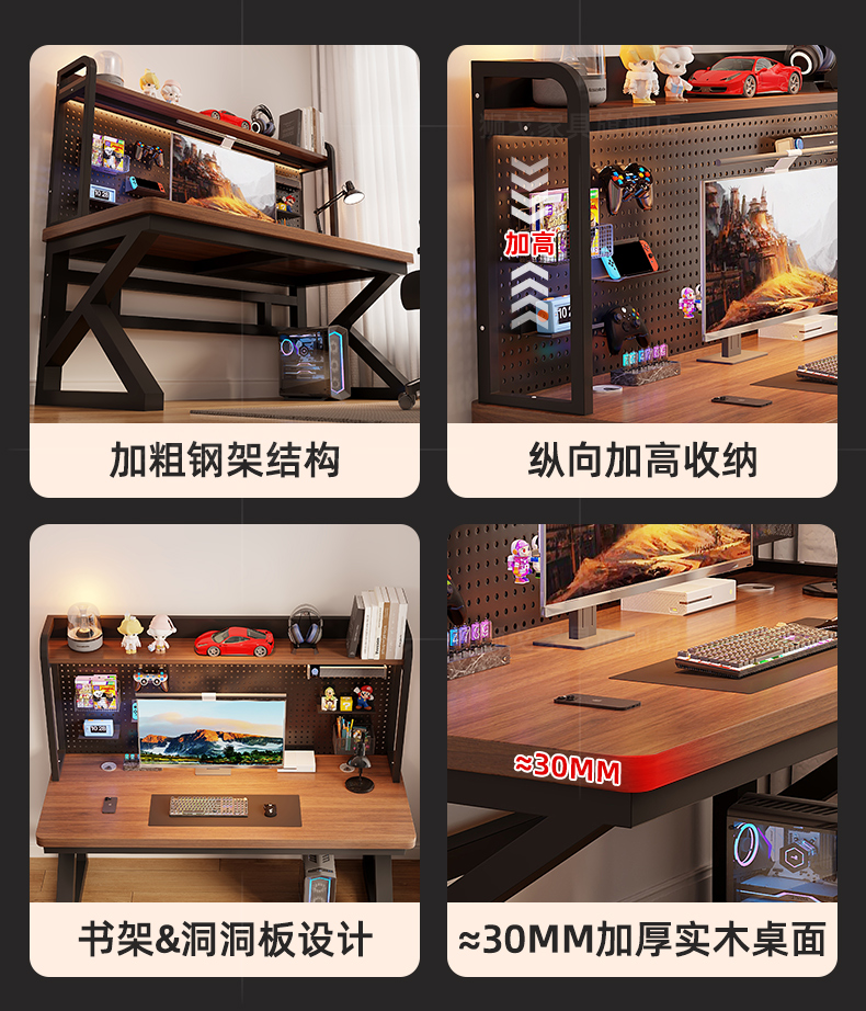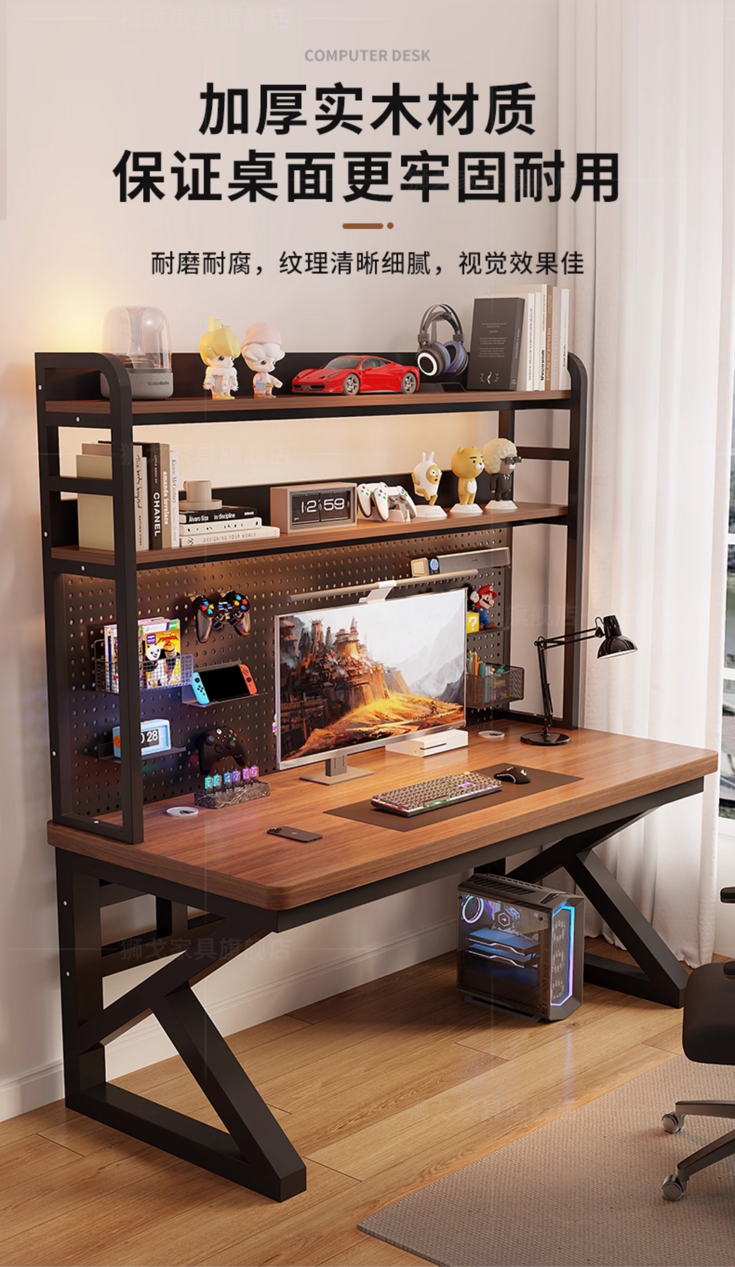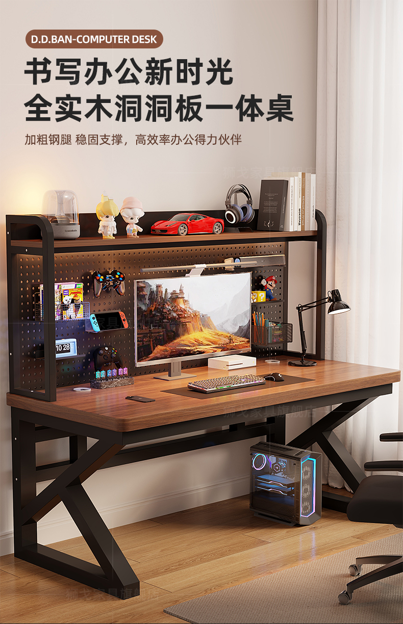书桌书架一体桌子带洞洞板简约卧室电竞桌学生家用台式实木电脑桌
