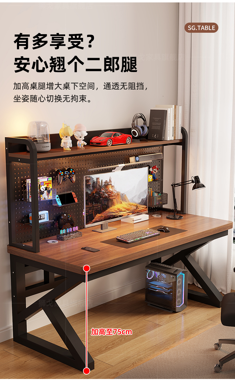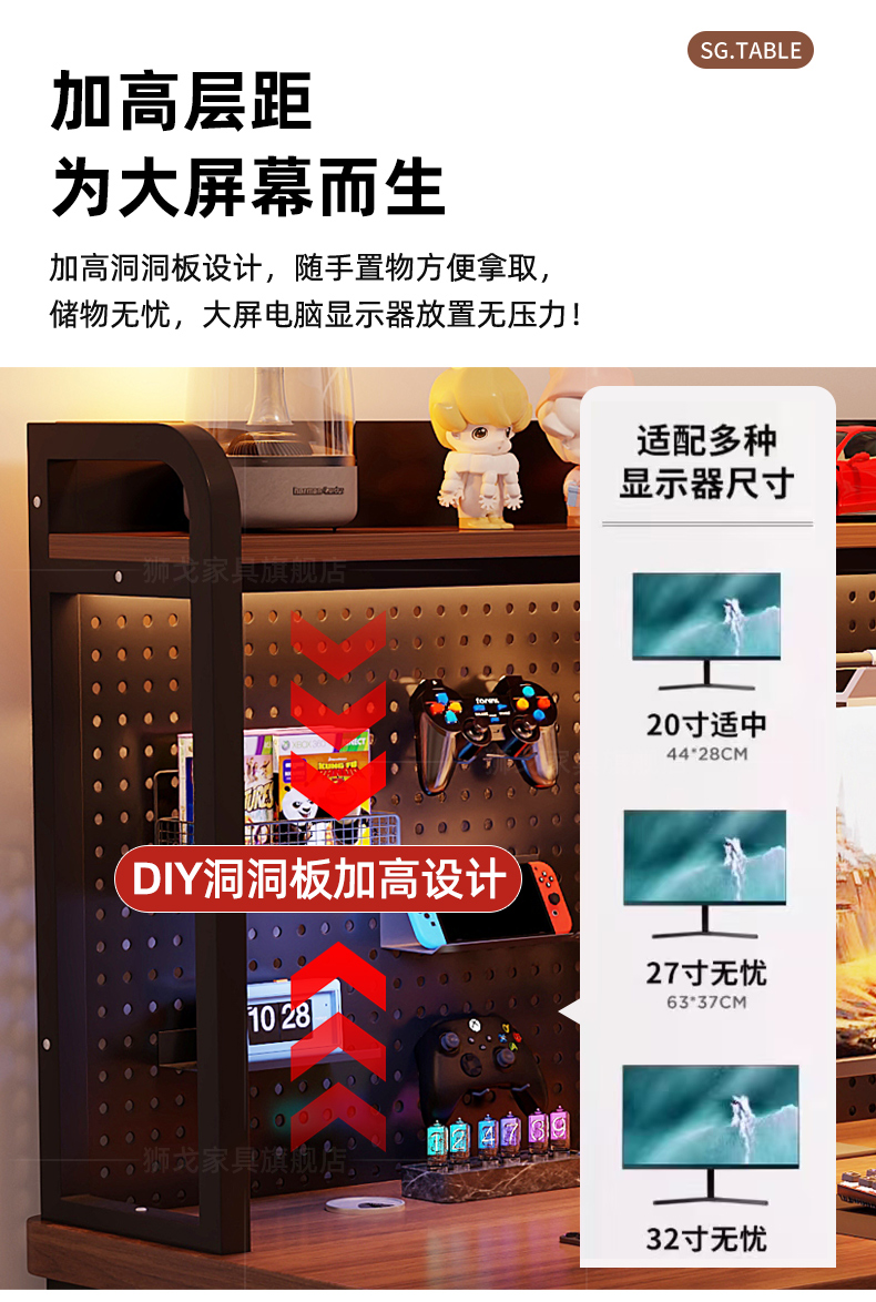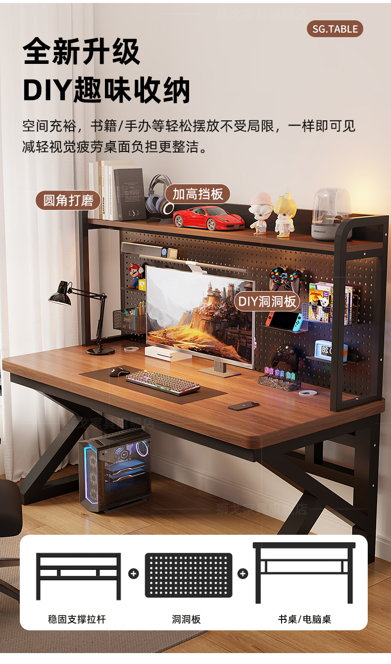 书桌书架一体桌子带洞洞板简约卧室电竞桌学生家用台式实木电脑桌