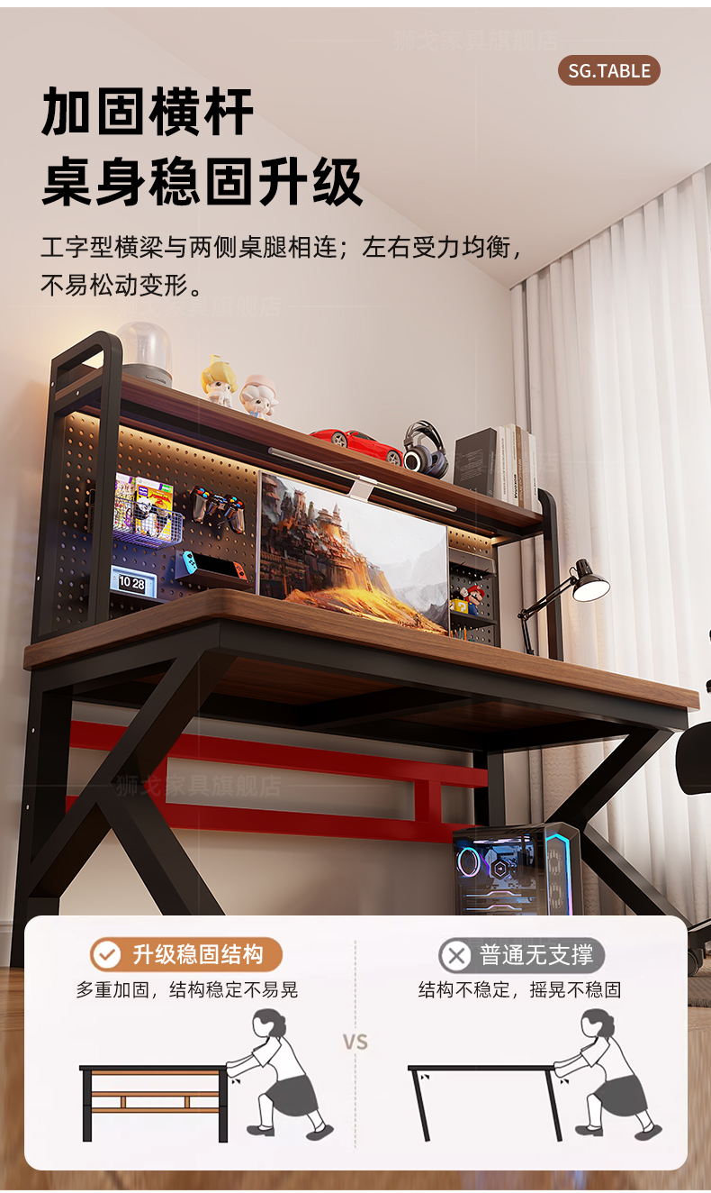 电脑桌台式钛戟S3电竞游戏桌可装机械臂碳纤维实木桌家用学生书桌