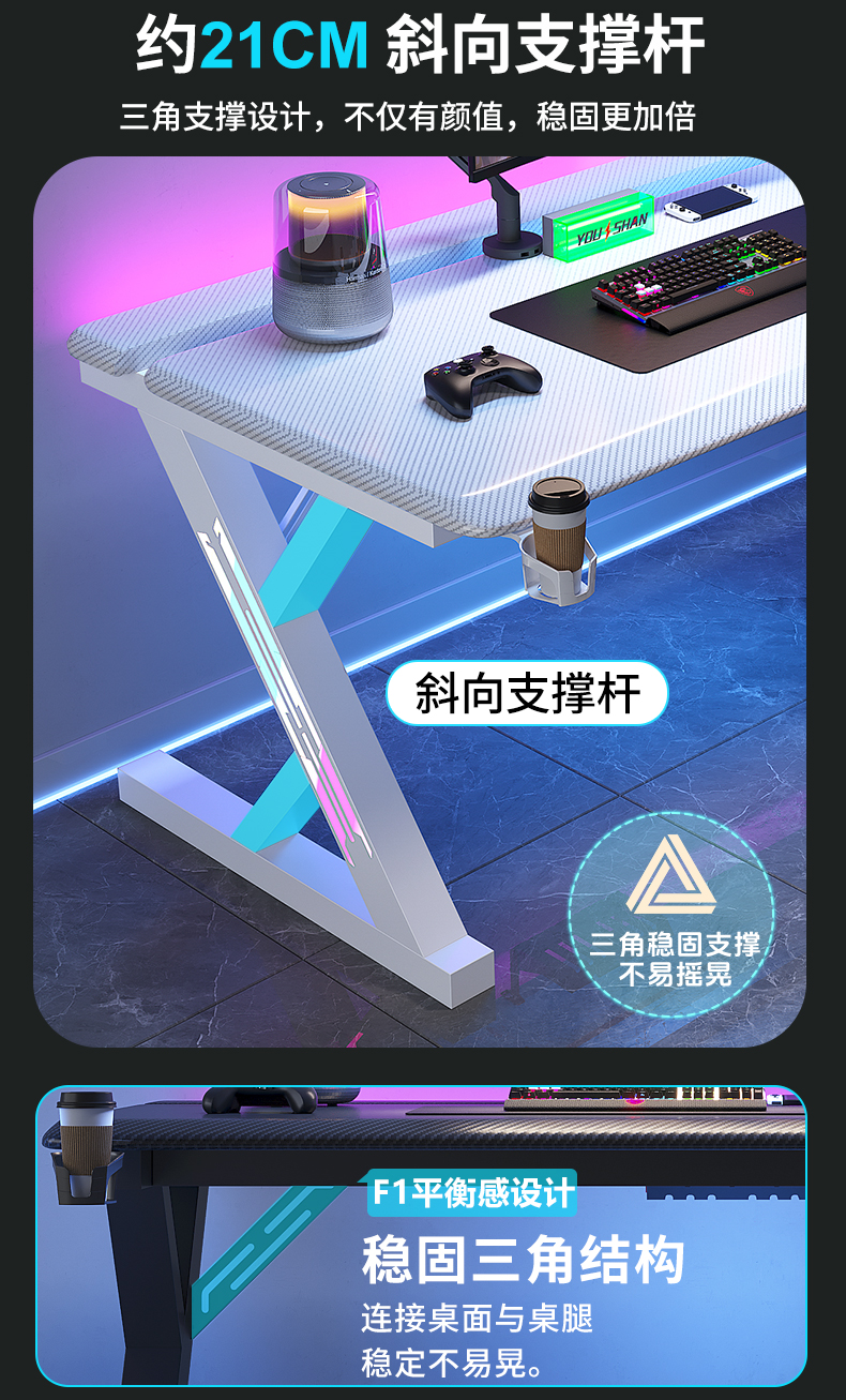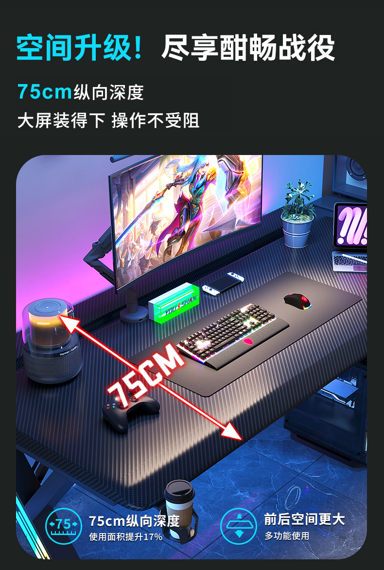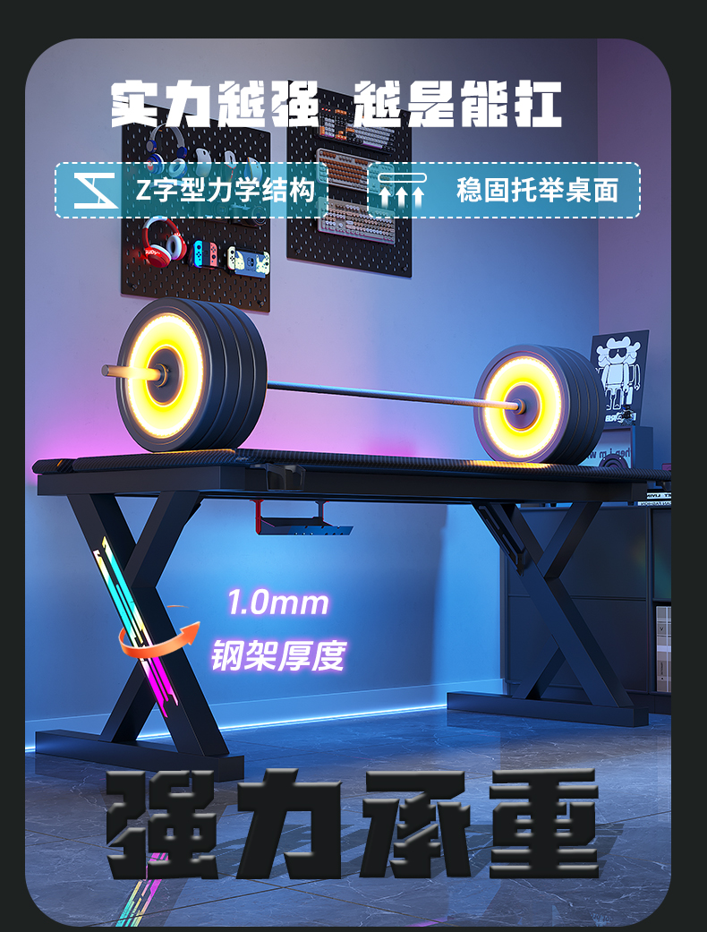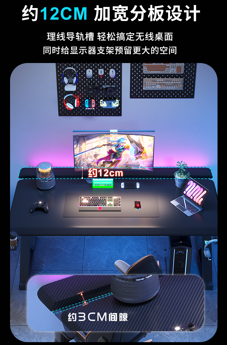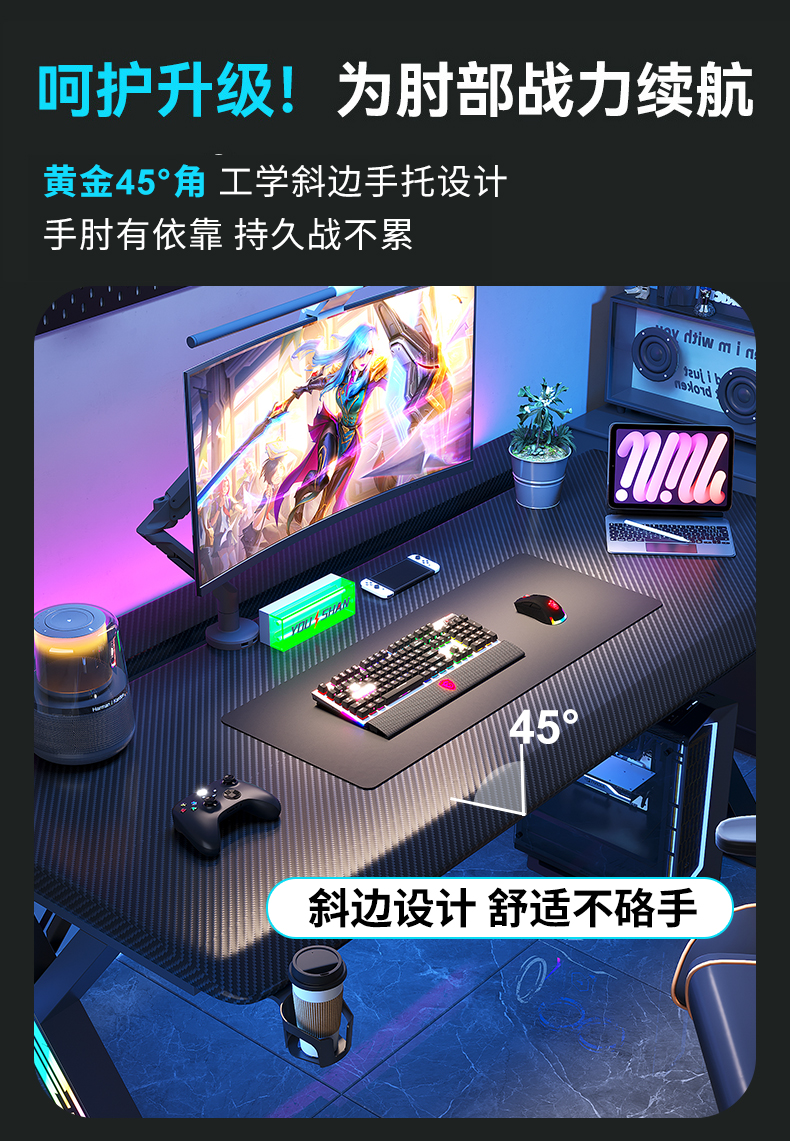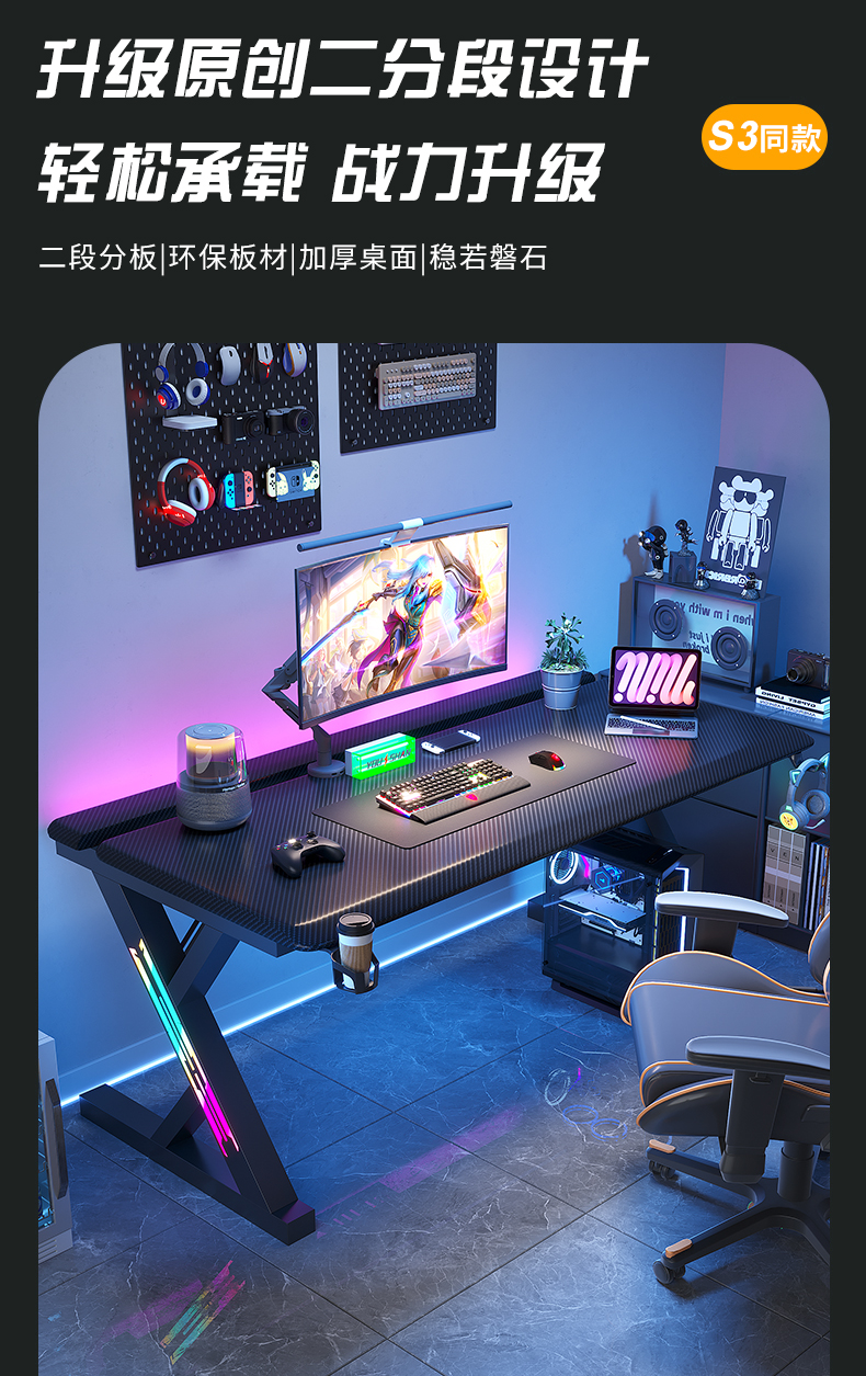 电脑桌台式钛戟S3电竞游戏桌可装机械臂碳纤维实木桌家用学生书桌
