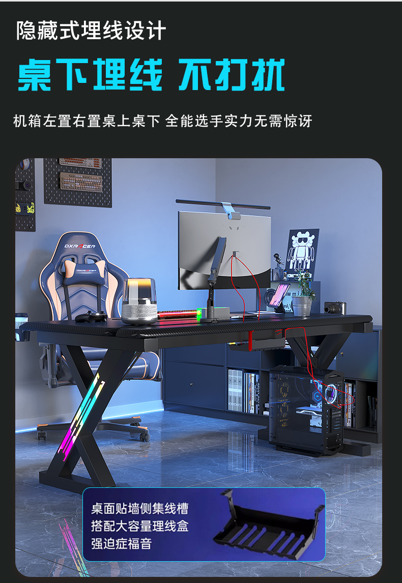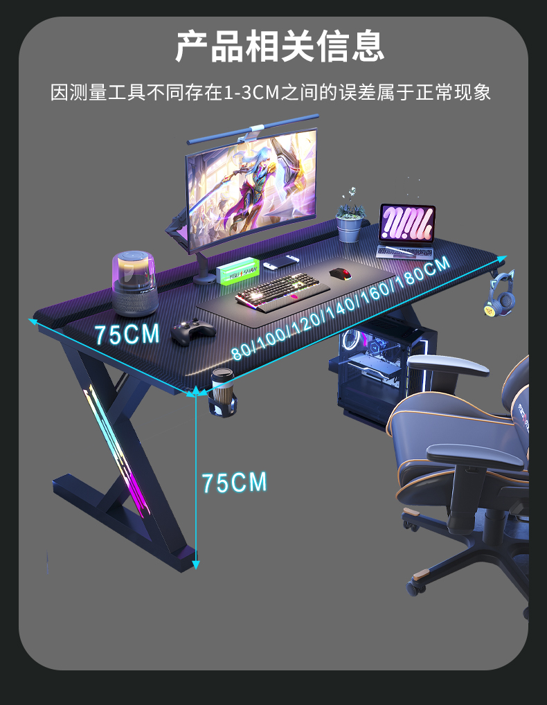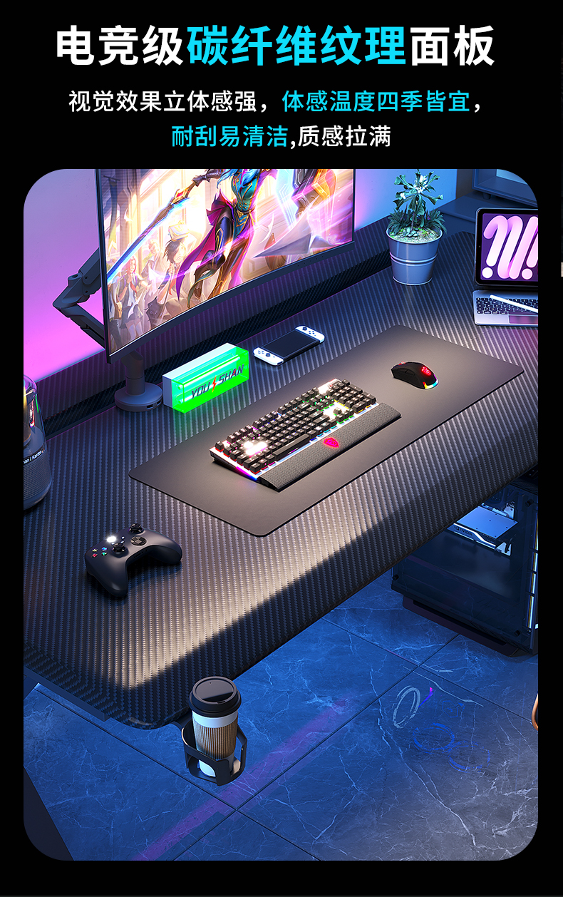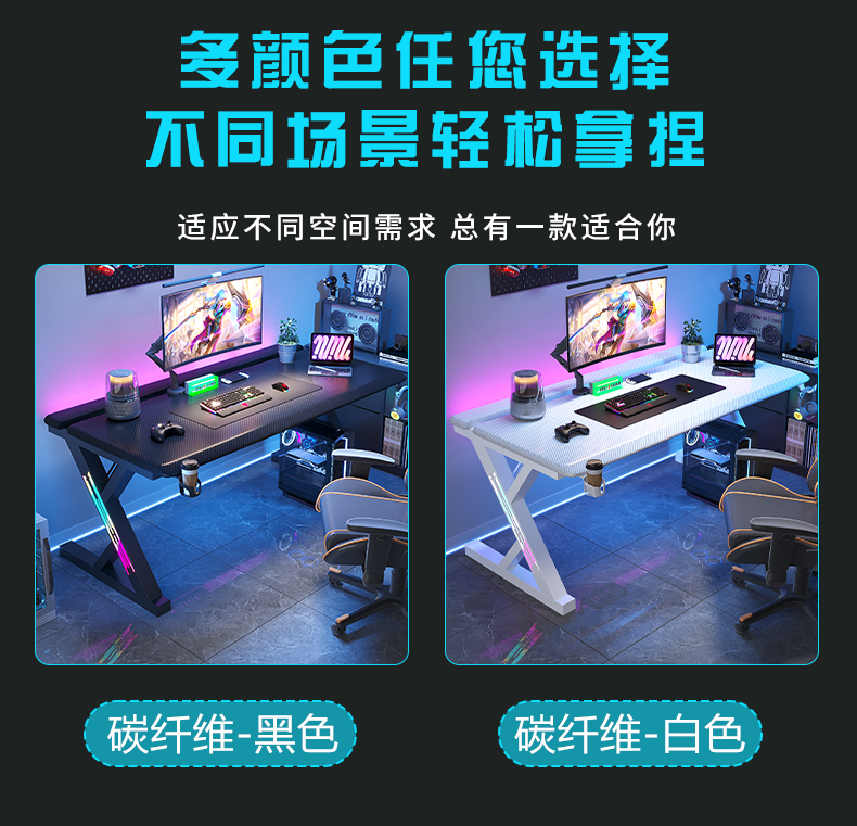 电脑桌台式卧室家用学生学习书桌双人电竞桌可装机械臂碳纤维桌子