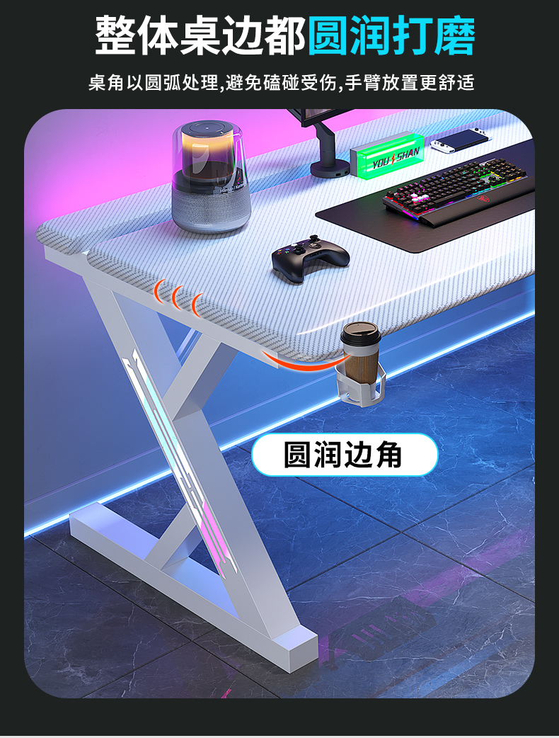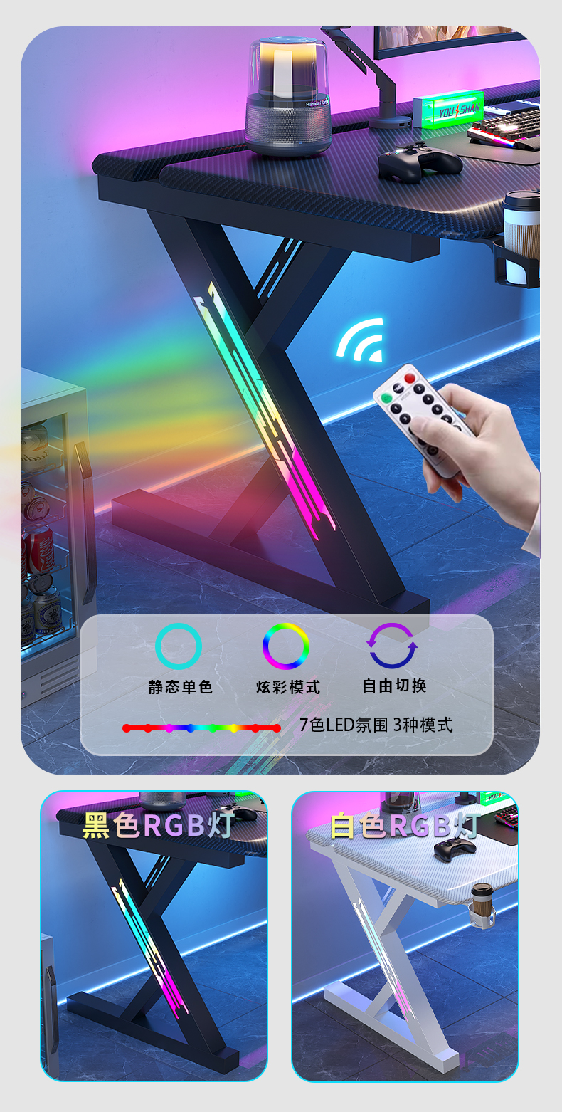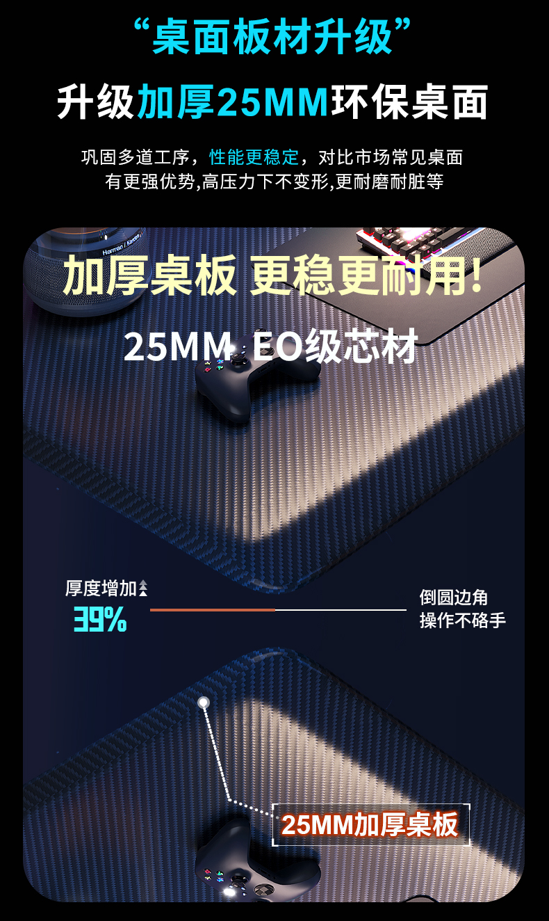 电脑桌台式卧室家用学生学习书桌双人电竞桌可装机械臂碳纤维桌子
