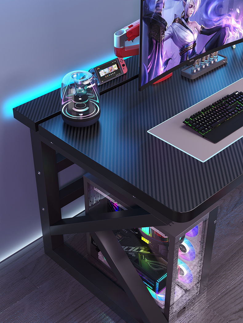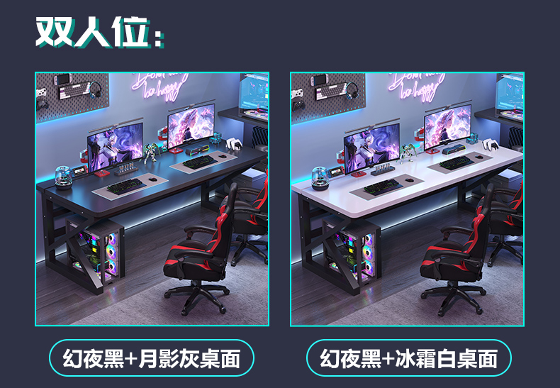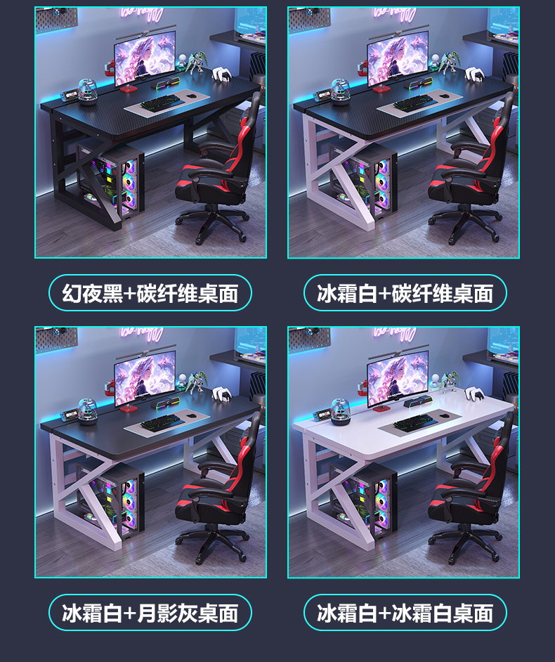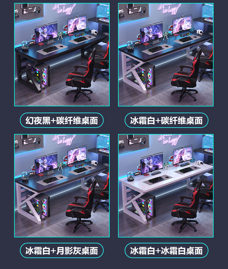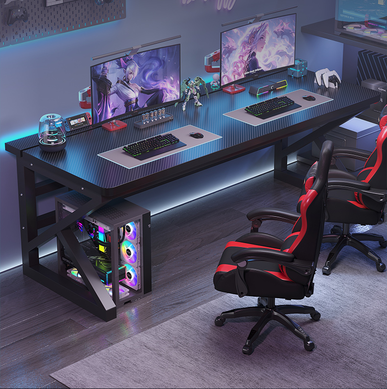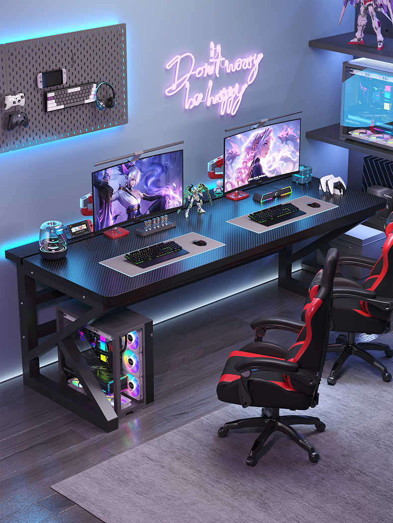 电脑桌台式卧室家用学生学习书桌双人电竞桌可装机械臂碳纤维桌子