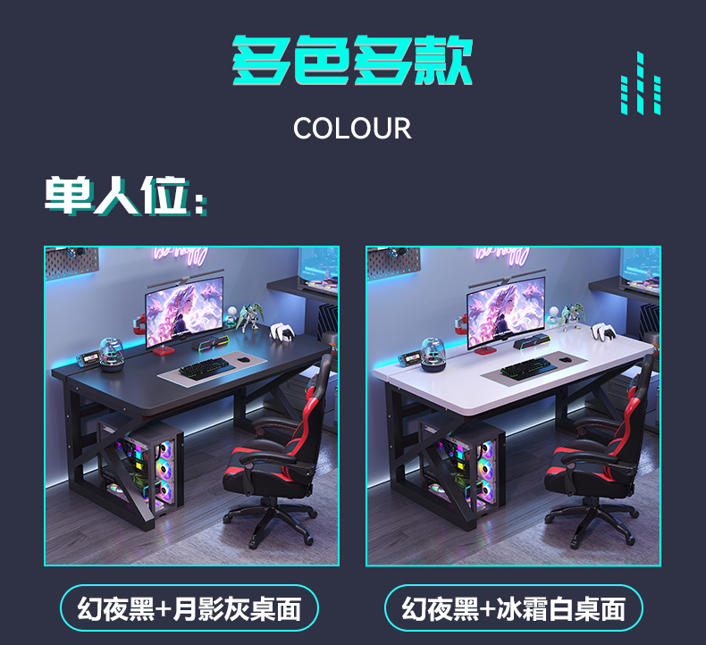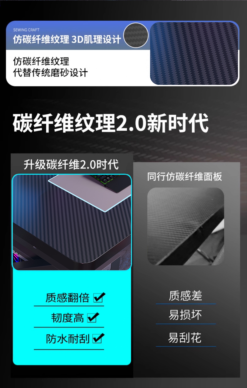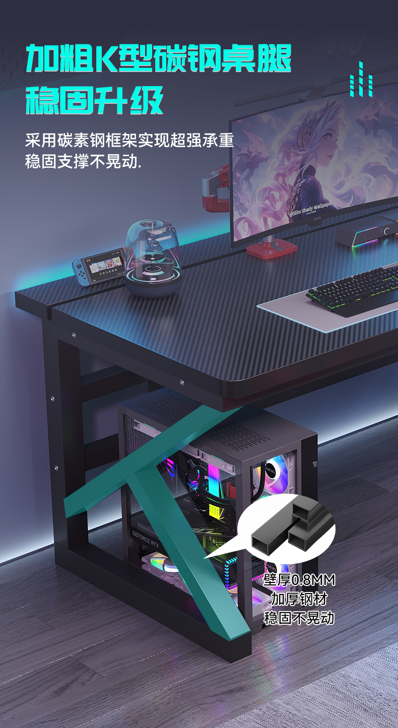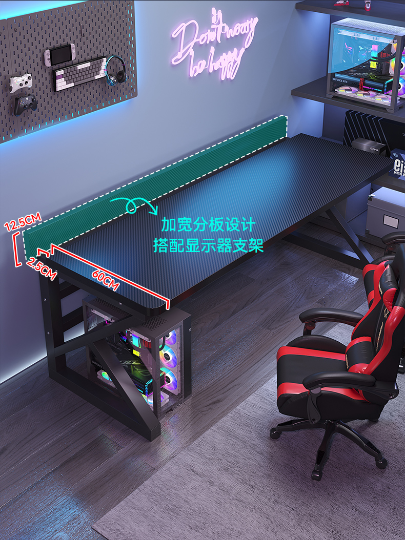 电脑桌台式卧室家用学生学习书桌双人电竞桌可装机械臂碳纤维桌子