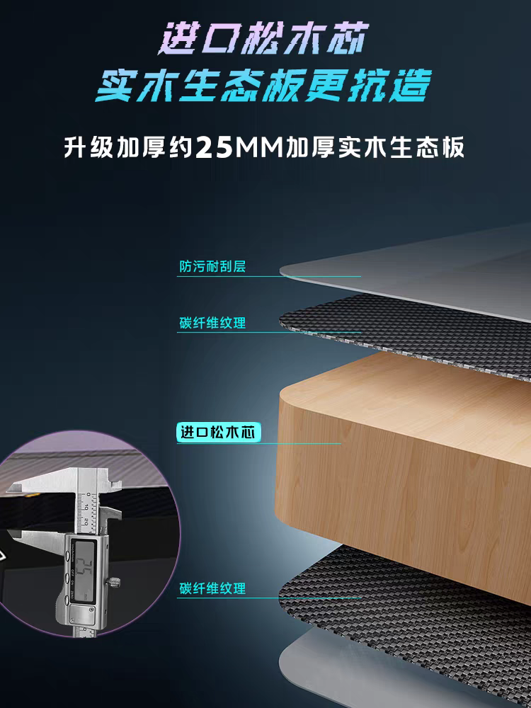 电脑桌台式钛戟S3电竞游戏桌可装机械臂碳纤维实木桌家用学生书桌