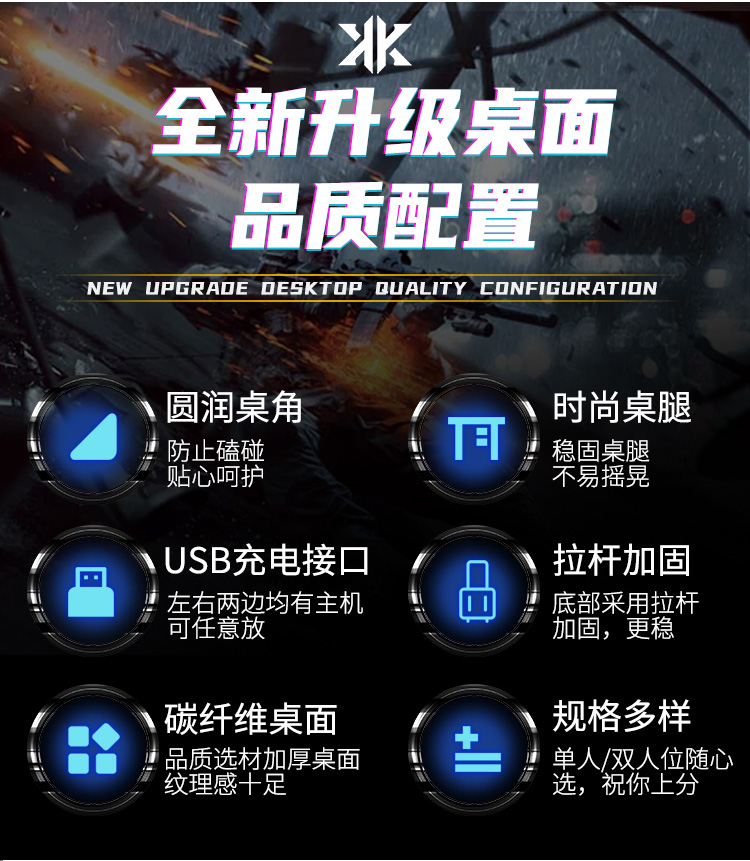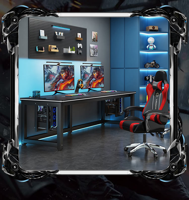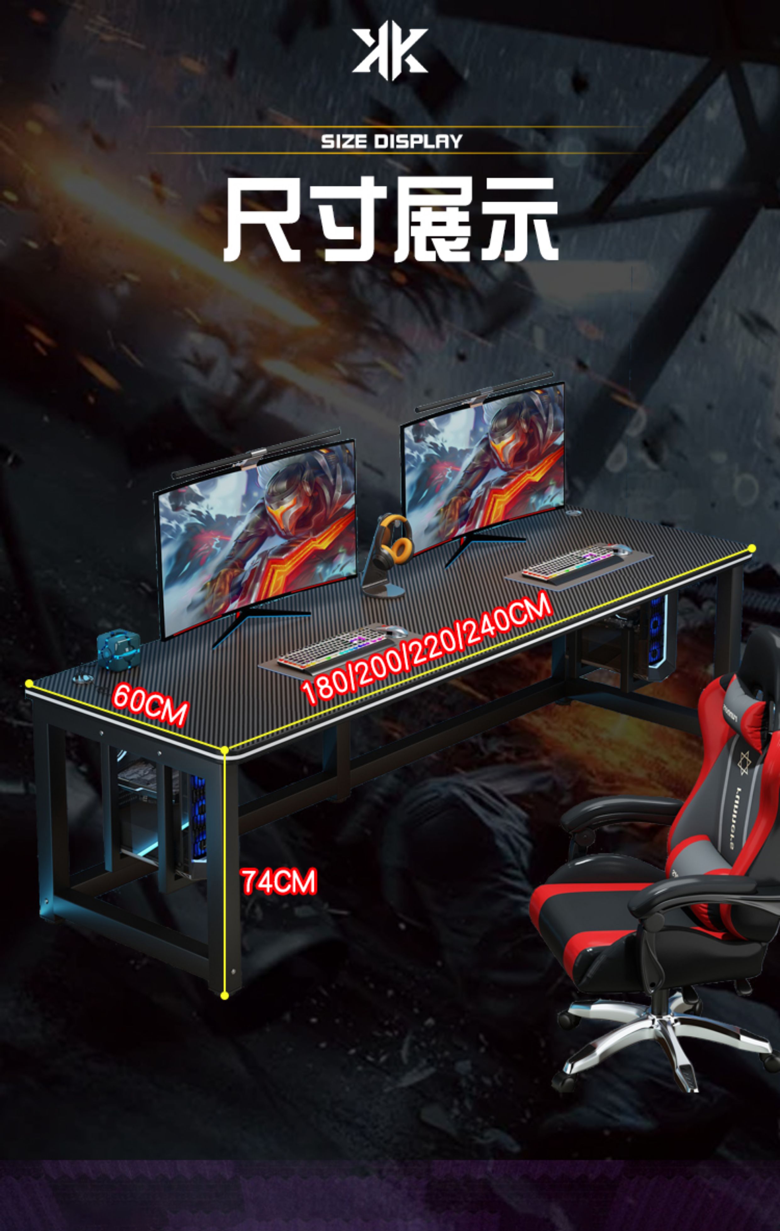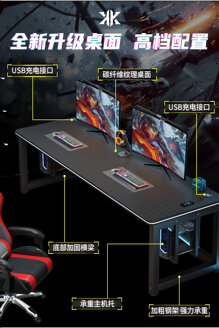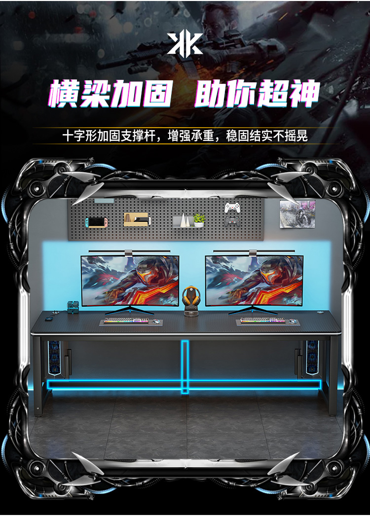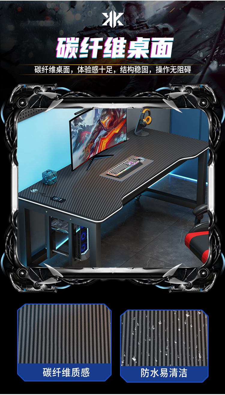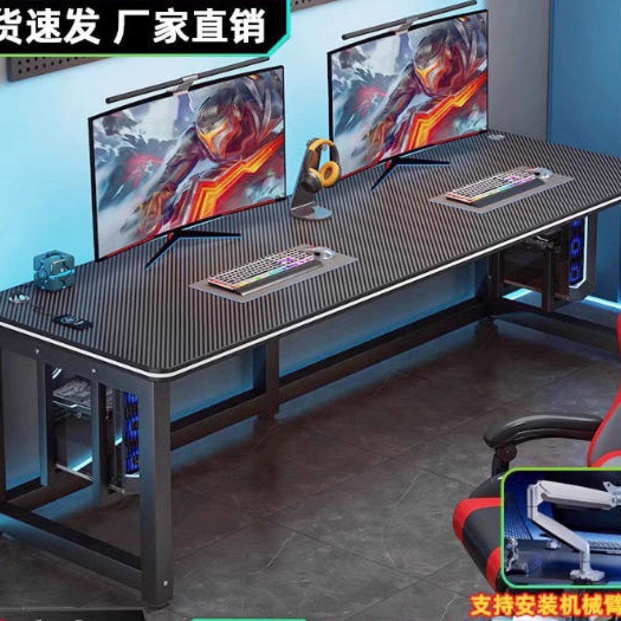 电脑桌台式卧室家用学生学习书桌双人电竞桌可装机械臂碳纤维桌子