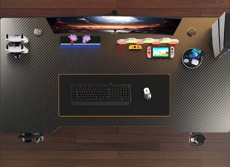 电脑桌台式卧室家用学生学习书桌双人电竞桌可装机械臂碳纤维桌子