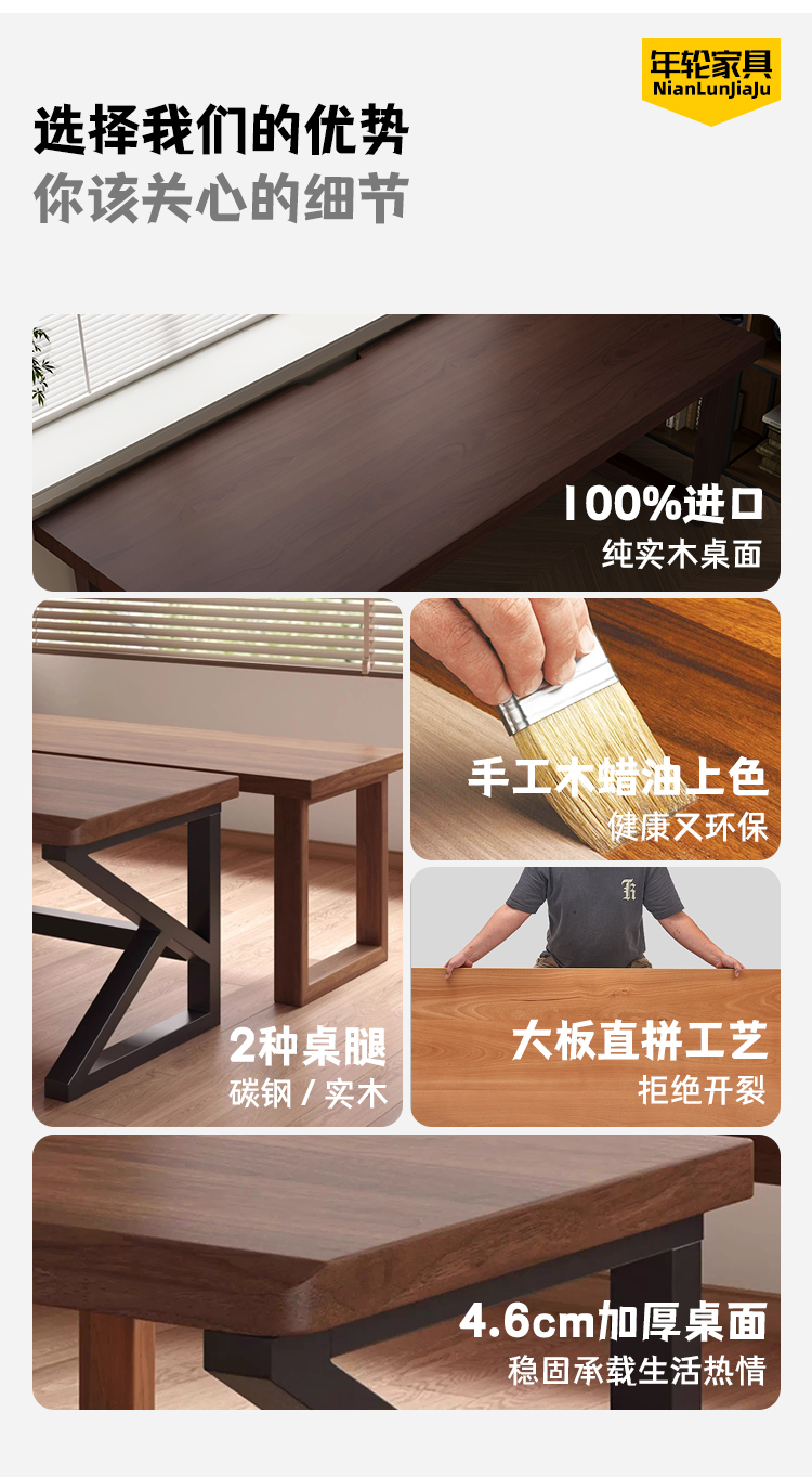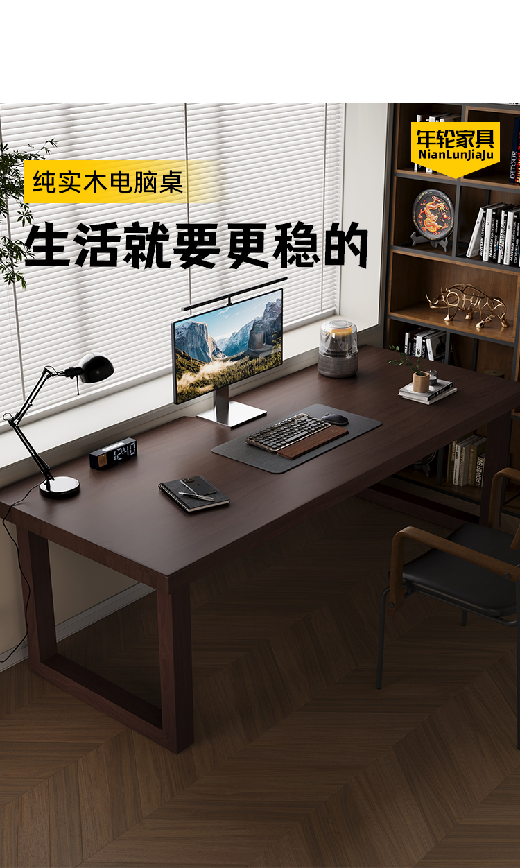 纯实木电脑桌卧室家用书桌大板台式电竞双人办公桌学习桌子工作台