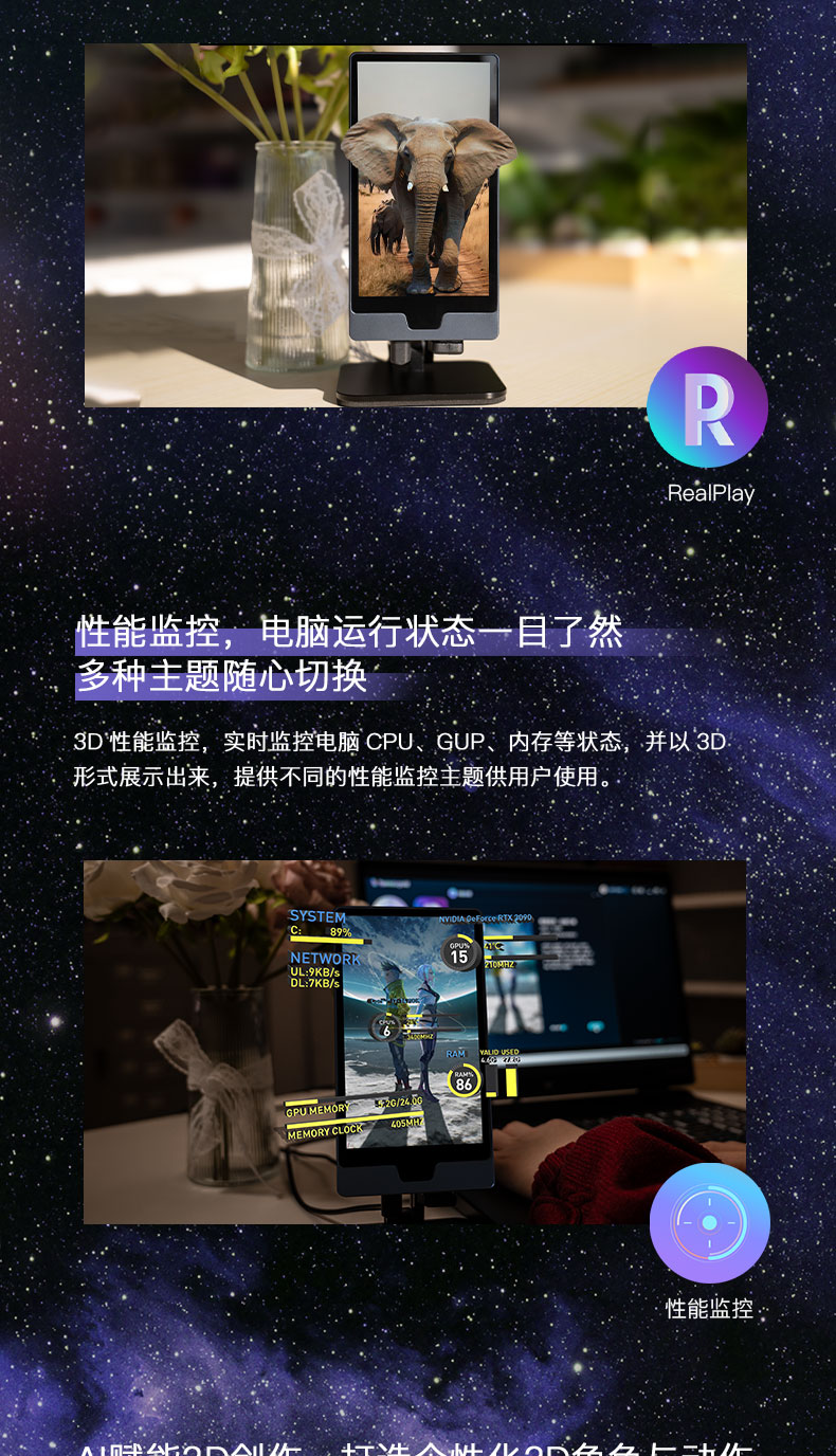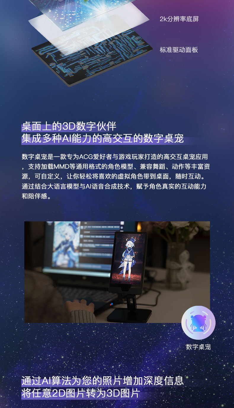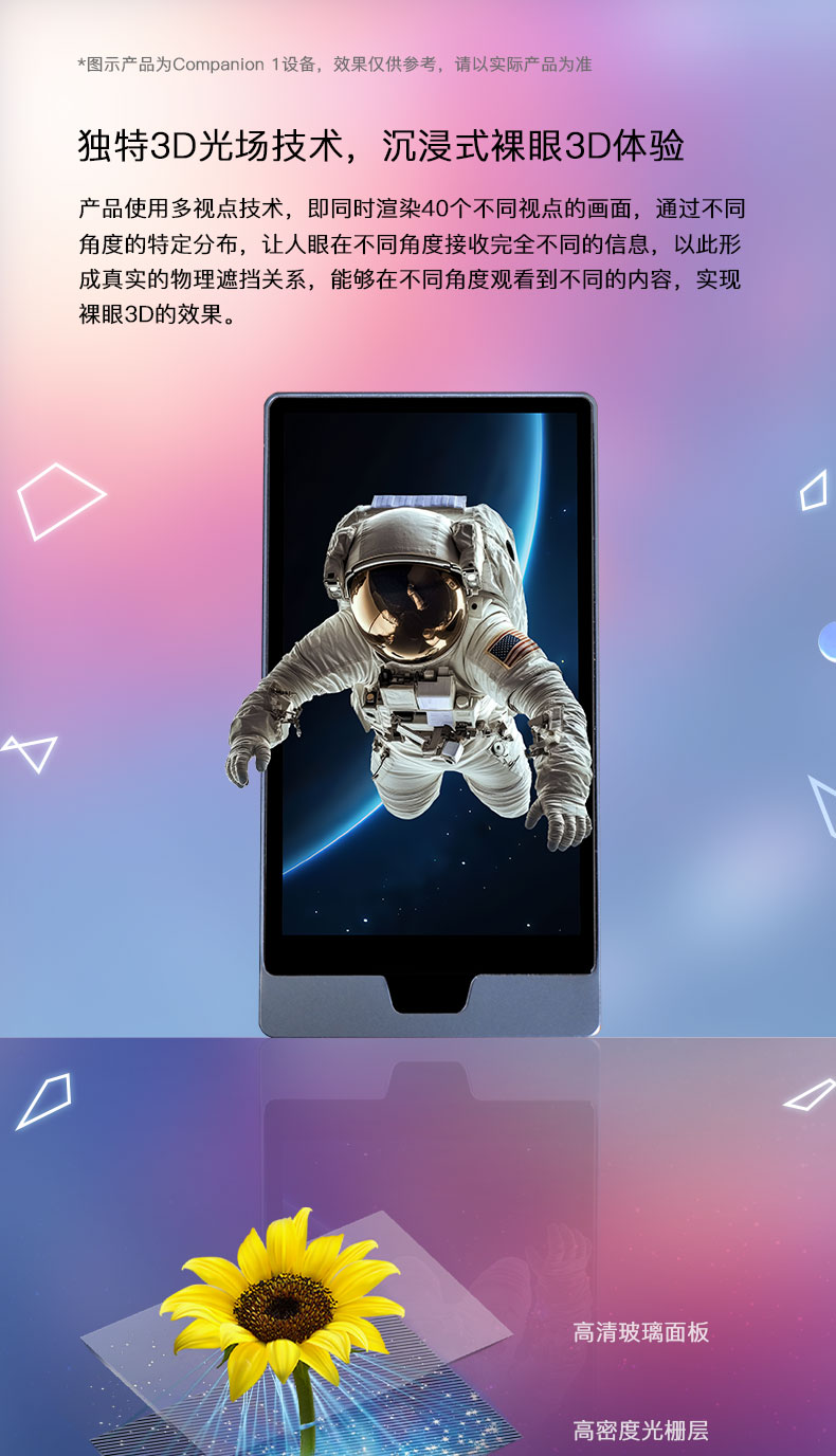 裸眼3D Companion1外接显示设备AI全息伴侣高交互数字桌宠桌搭
