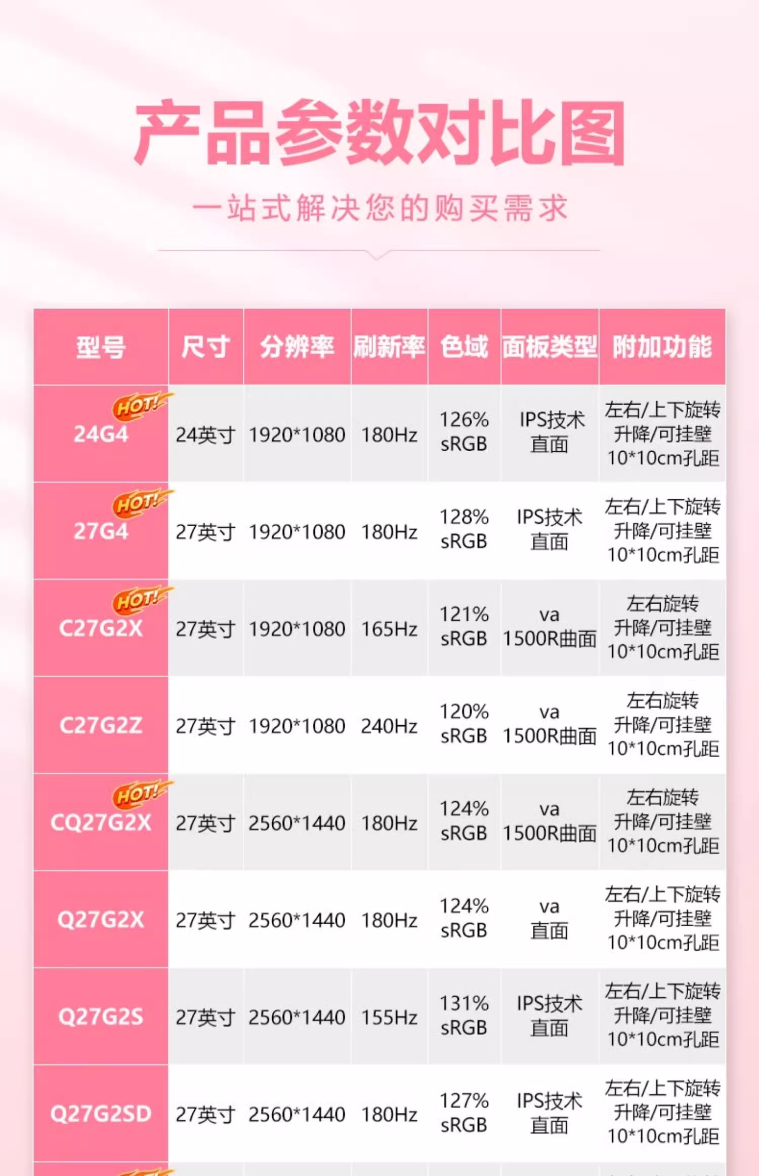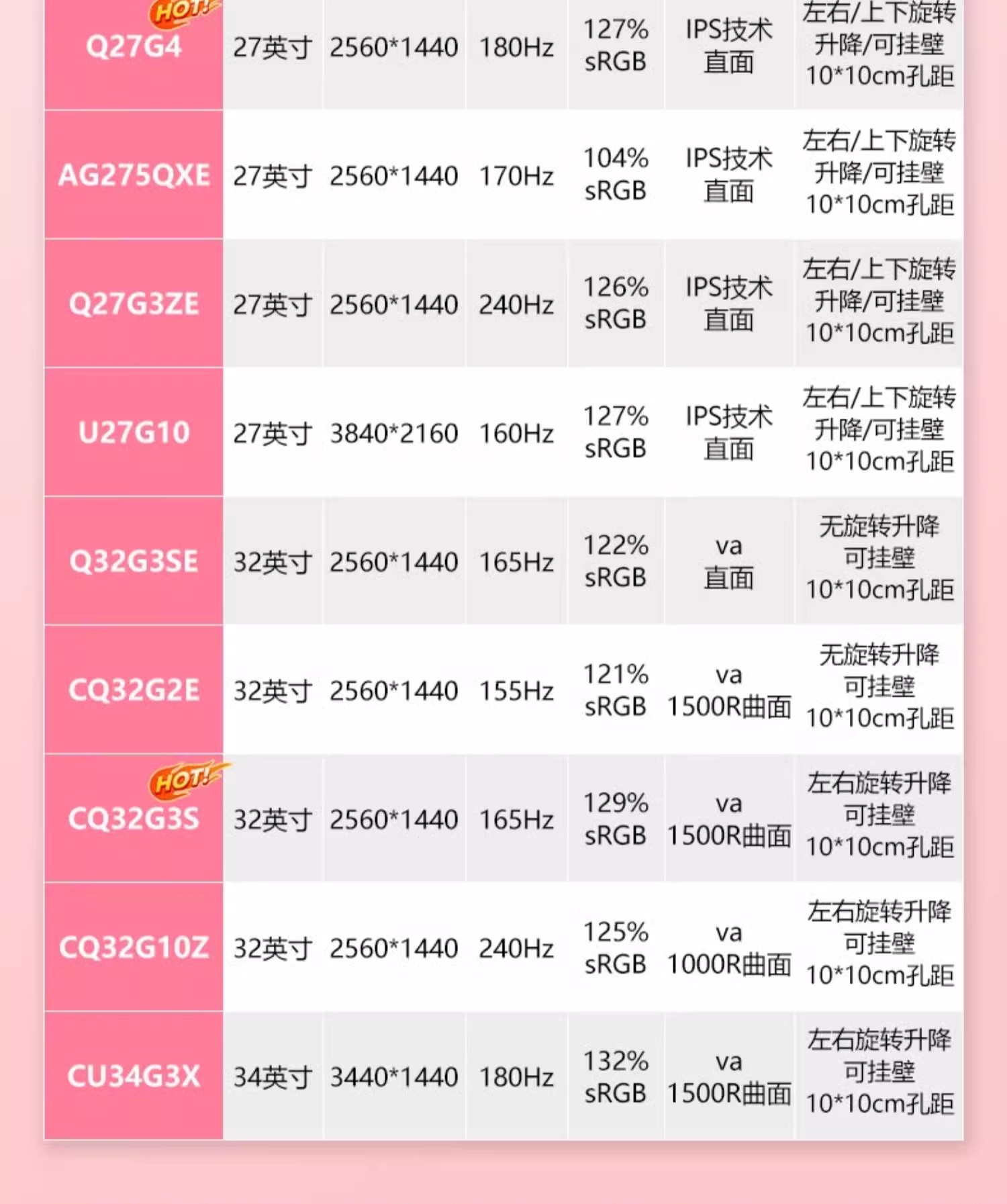 AOC粉色显示器27寸170HZ2K高清台式电脑定制白色显示屏幕Q27G2SD