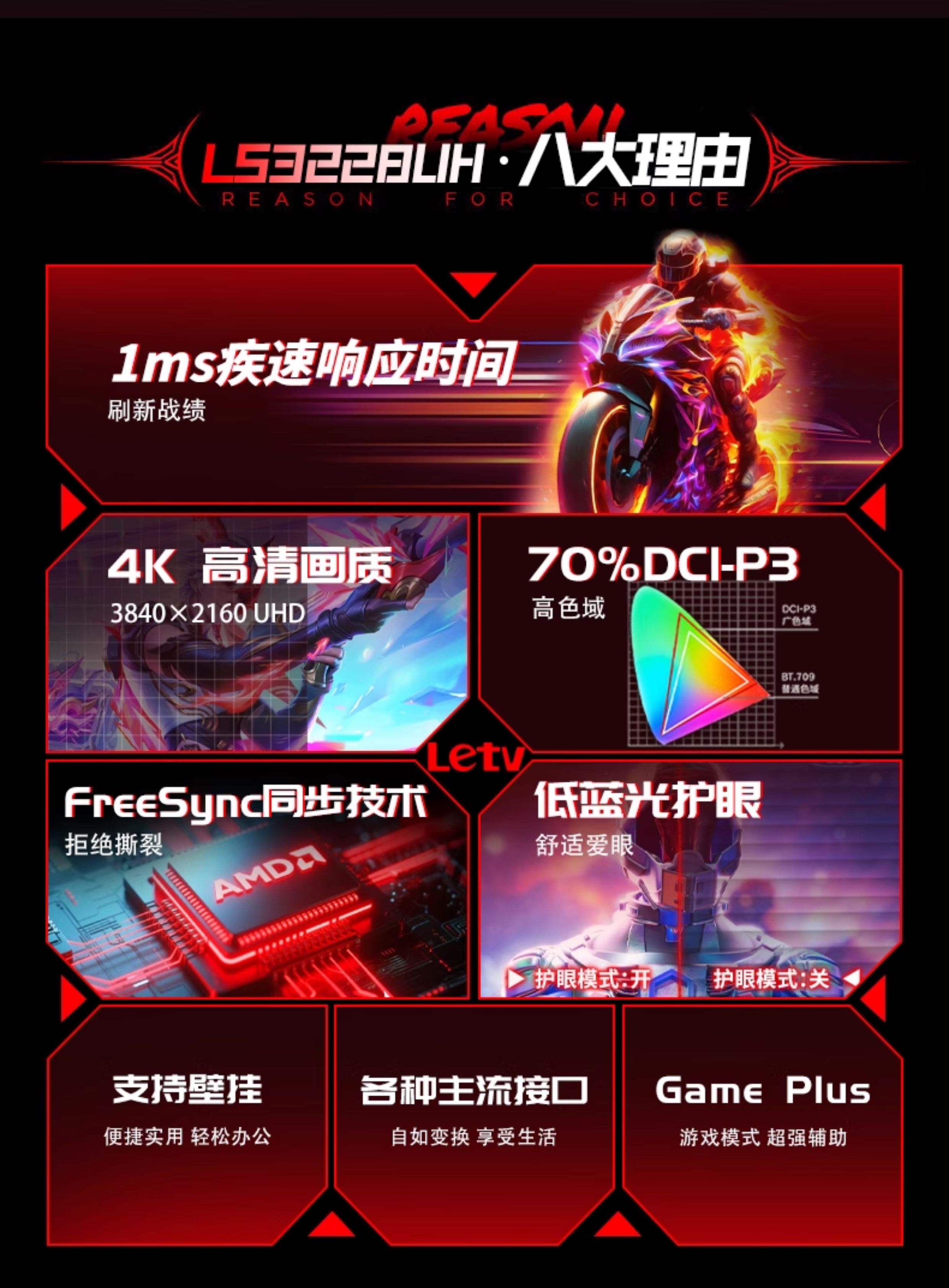 乐视32/27英寸2K高清4K显示器180Hz电竞显示屏直曲面办公游戏液晶