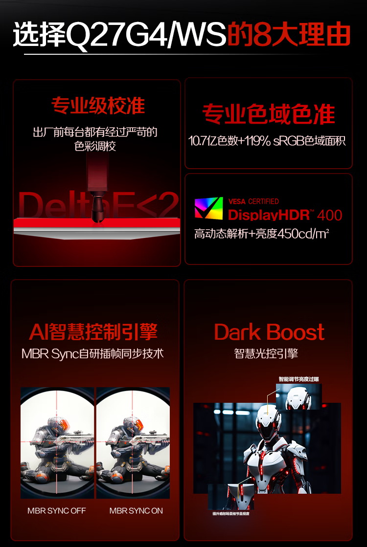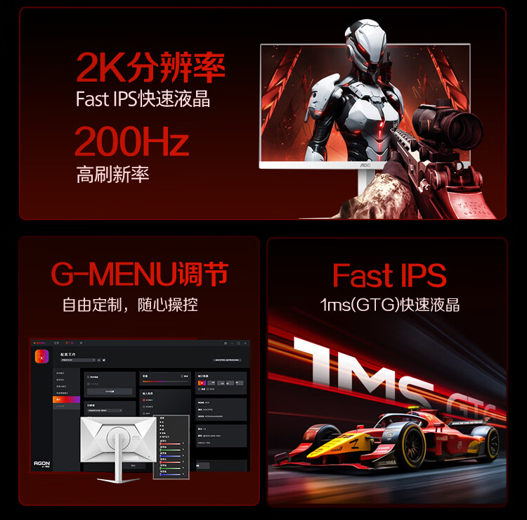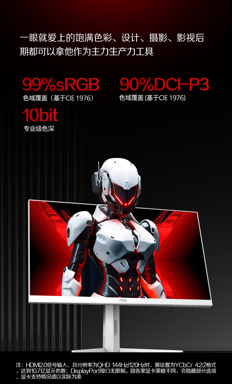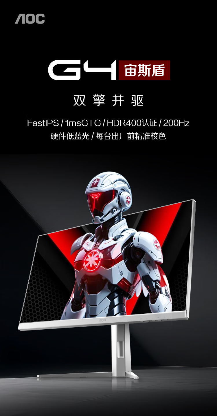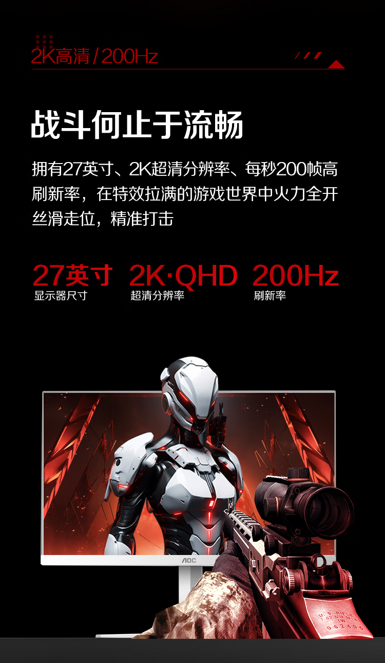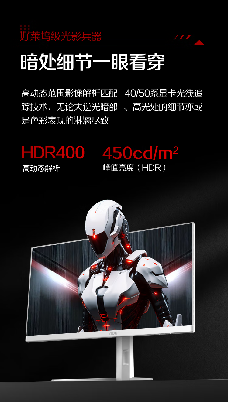 AOC Q27G4小金刚24英寸2K电竞180HZ显示器IPS白色电脑G11ZE屏幕27