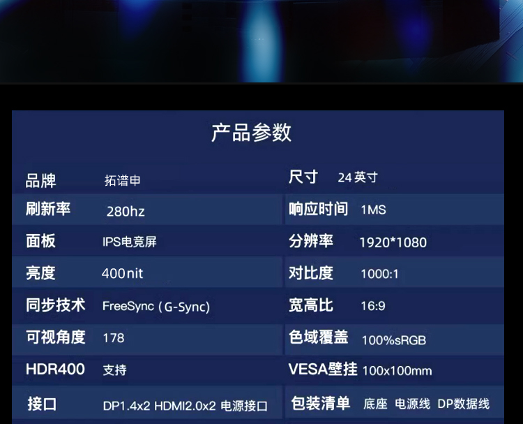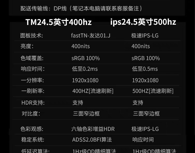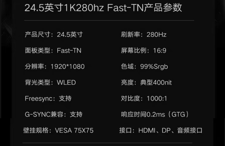 24.5英寸400hz/280hz/240hz电竞显示器友达面板TN屏