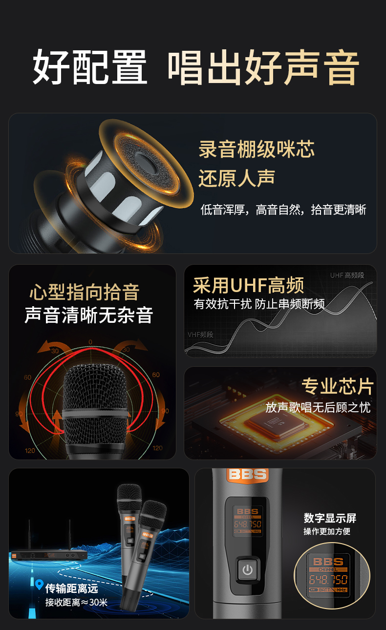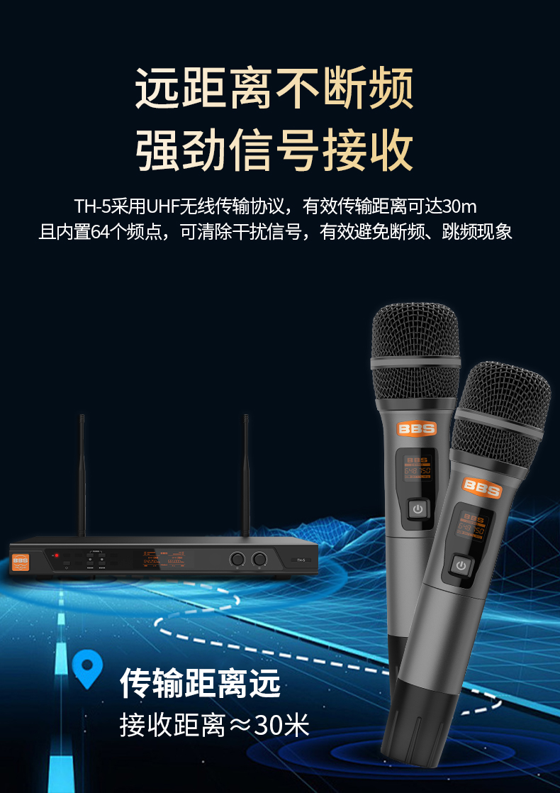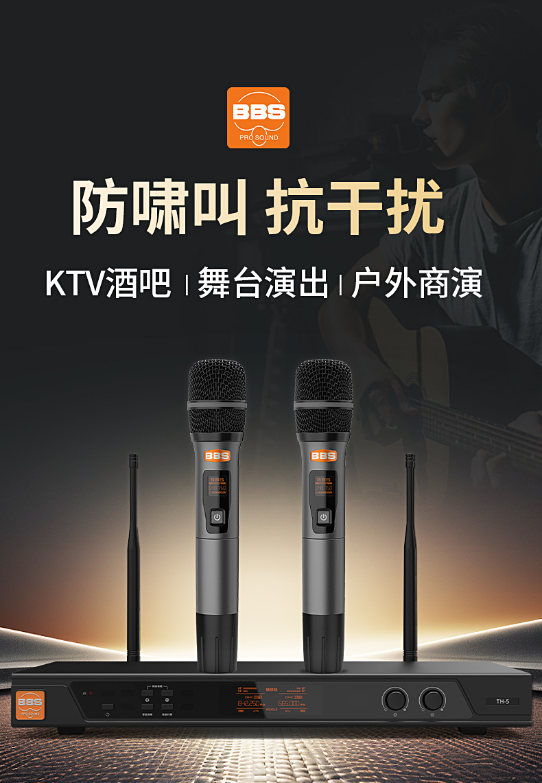 BBS无线话筒专业KTV家庭卡拉OK专用演出手持麦克风舞台K歌器TH-5