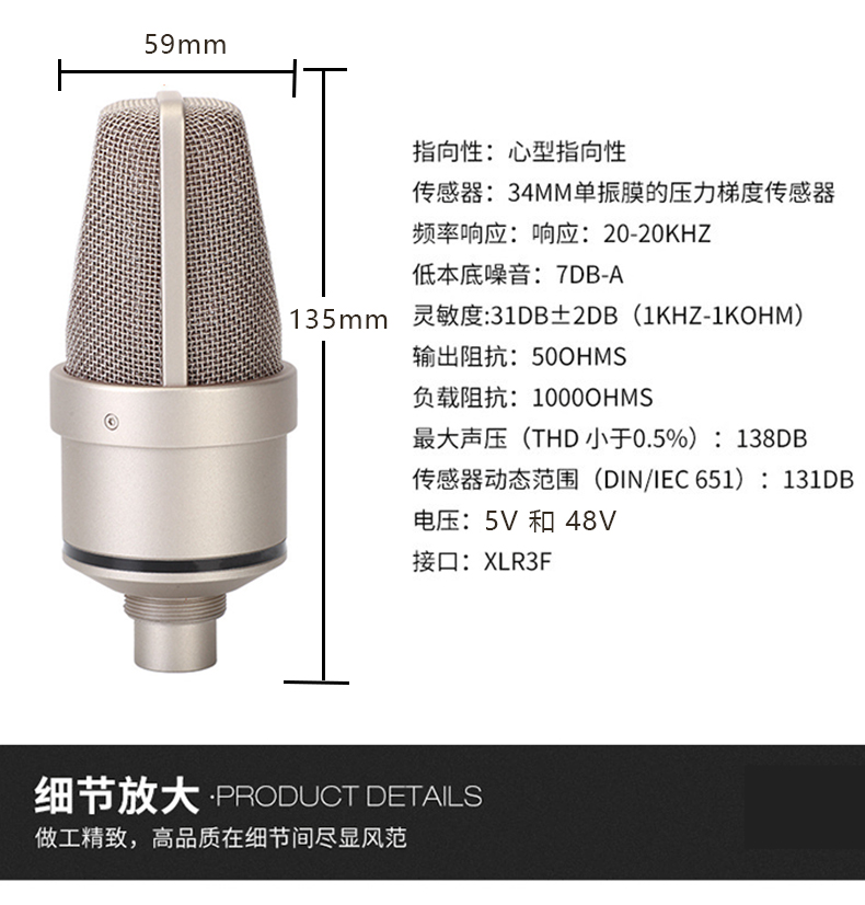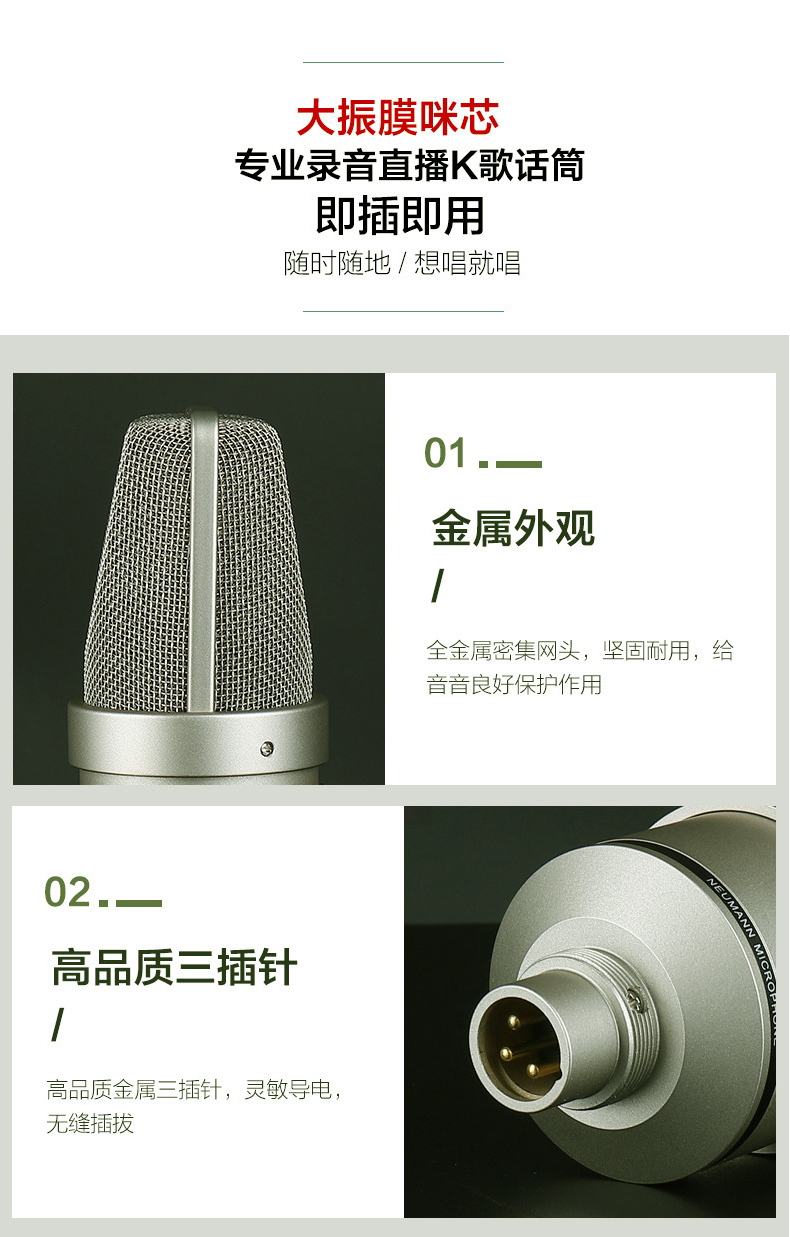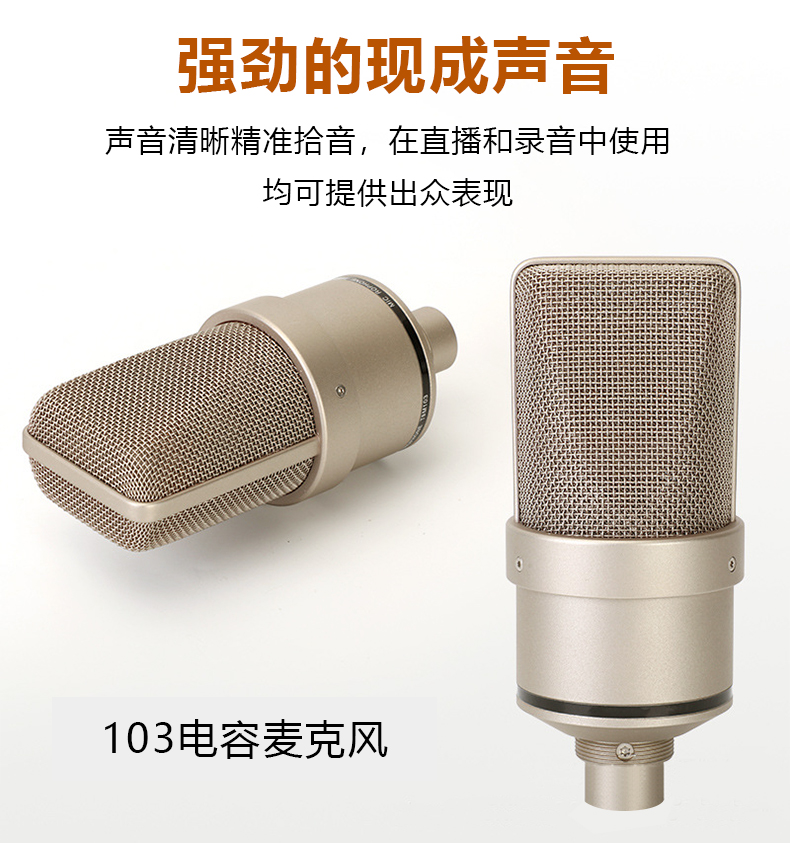 首页> 直播话筒> 律尔TLM103专业录音大震膜电容麦克风主播直播唱歌录音专用话筒