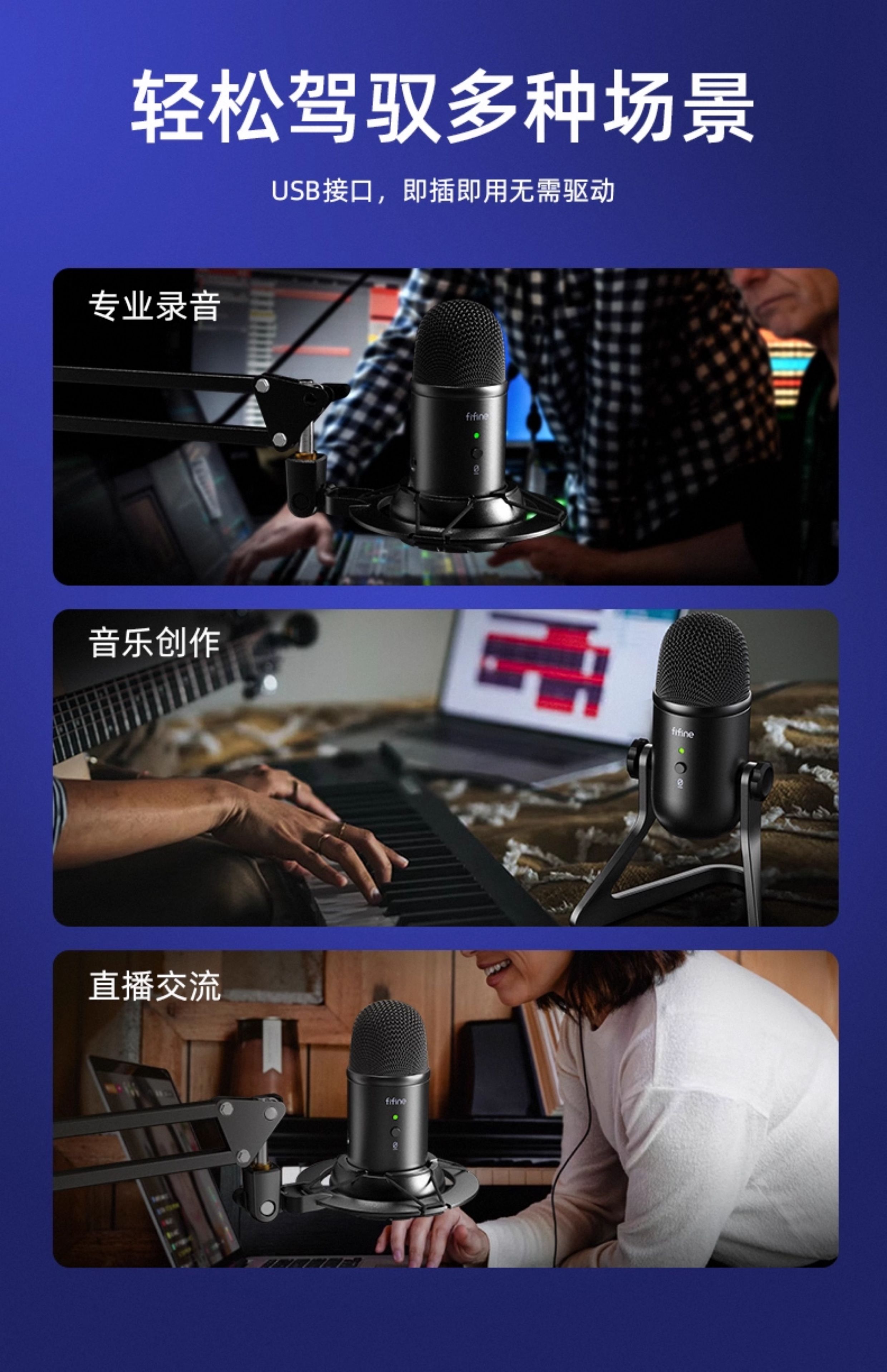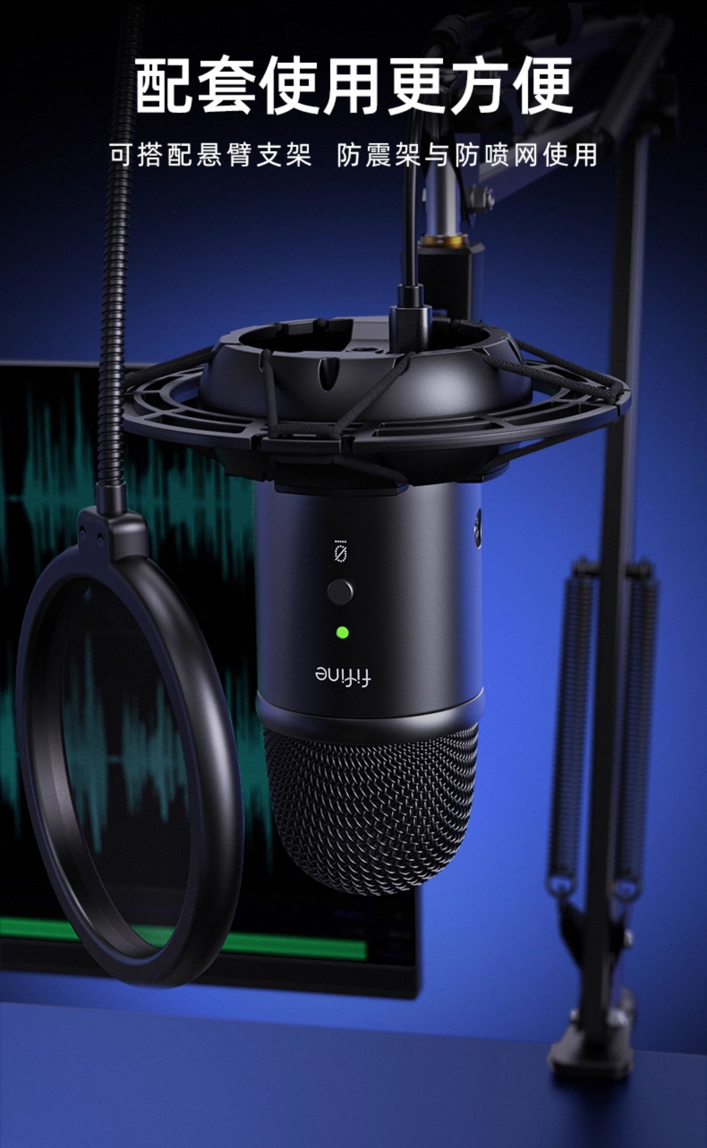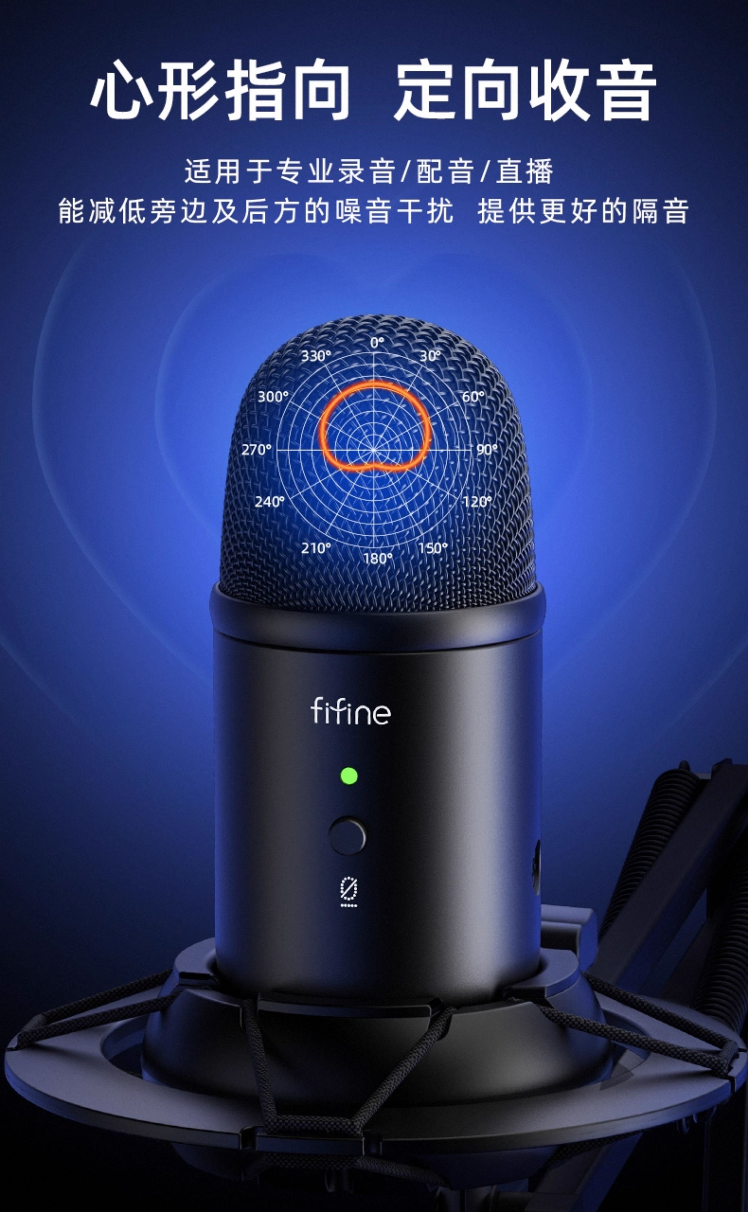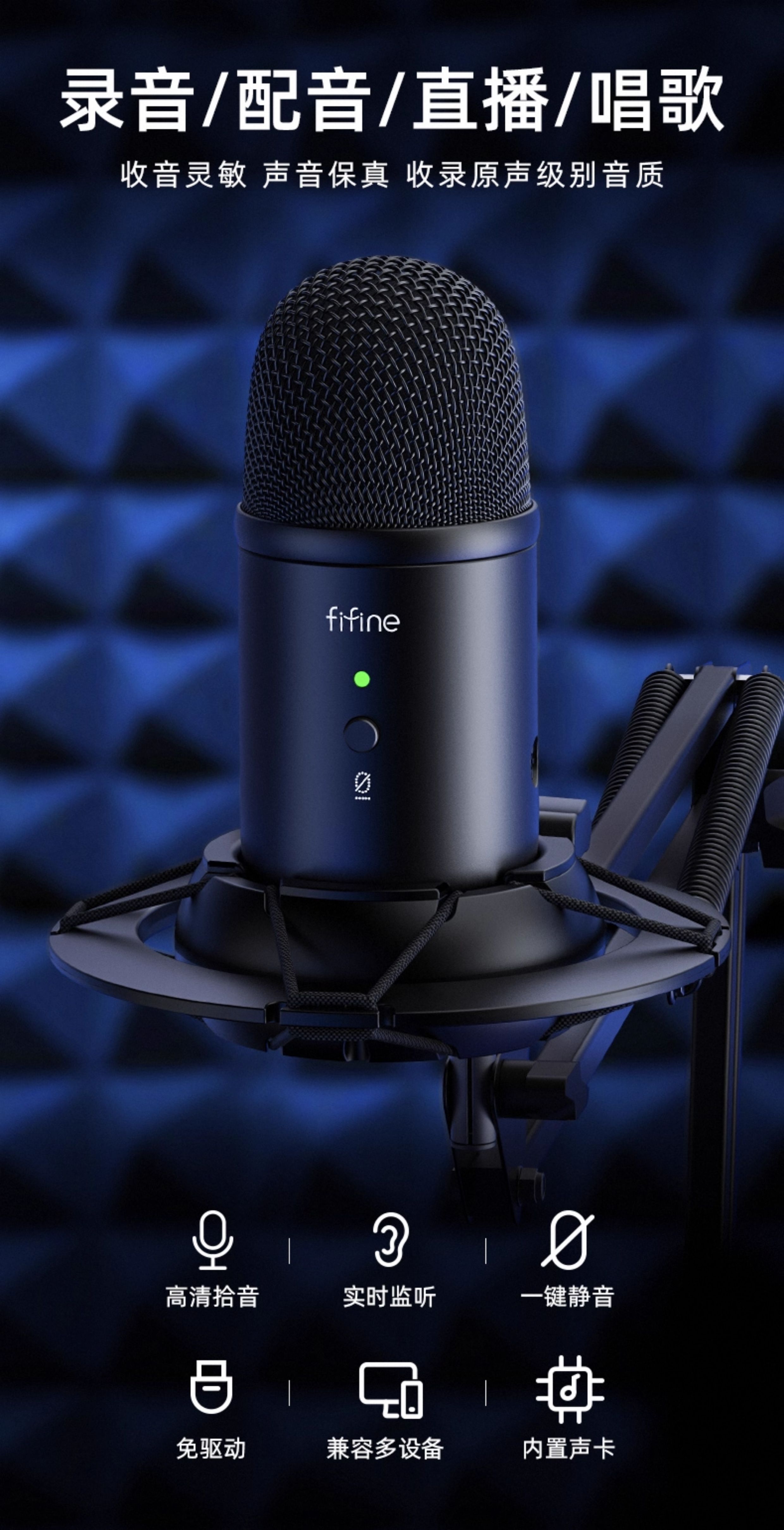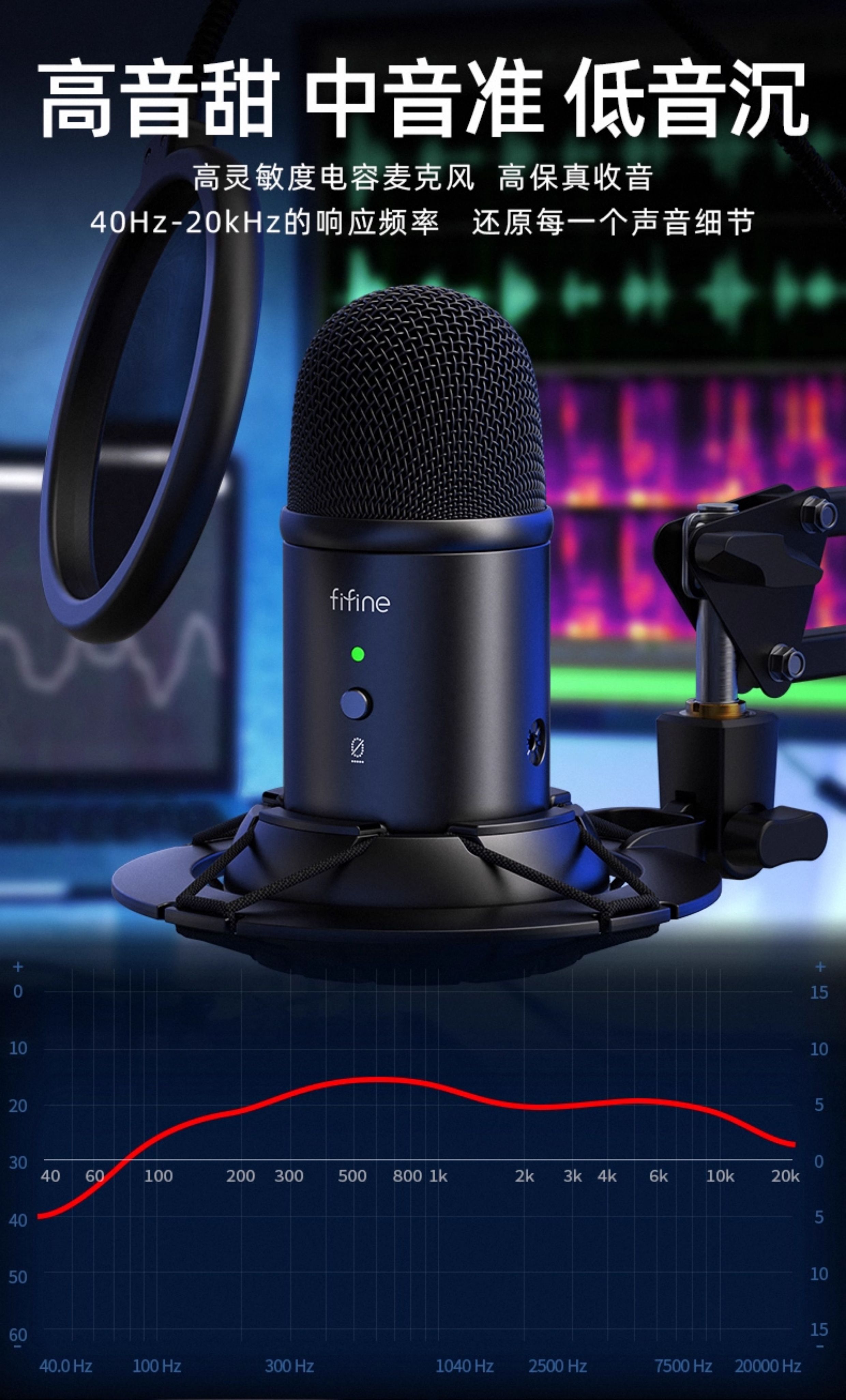 fifine专业录音麦克风电脑台式直播配音录歌游戏电竞电容话筒K678
