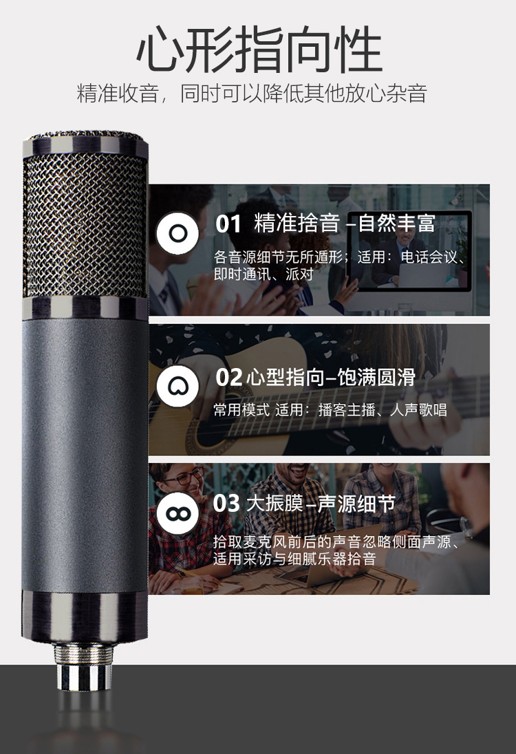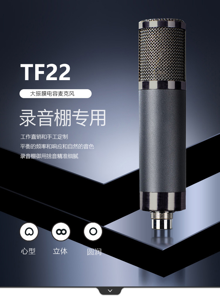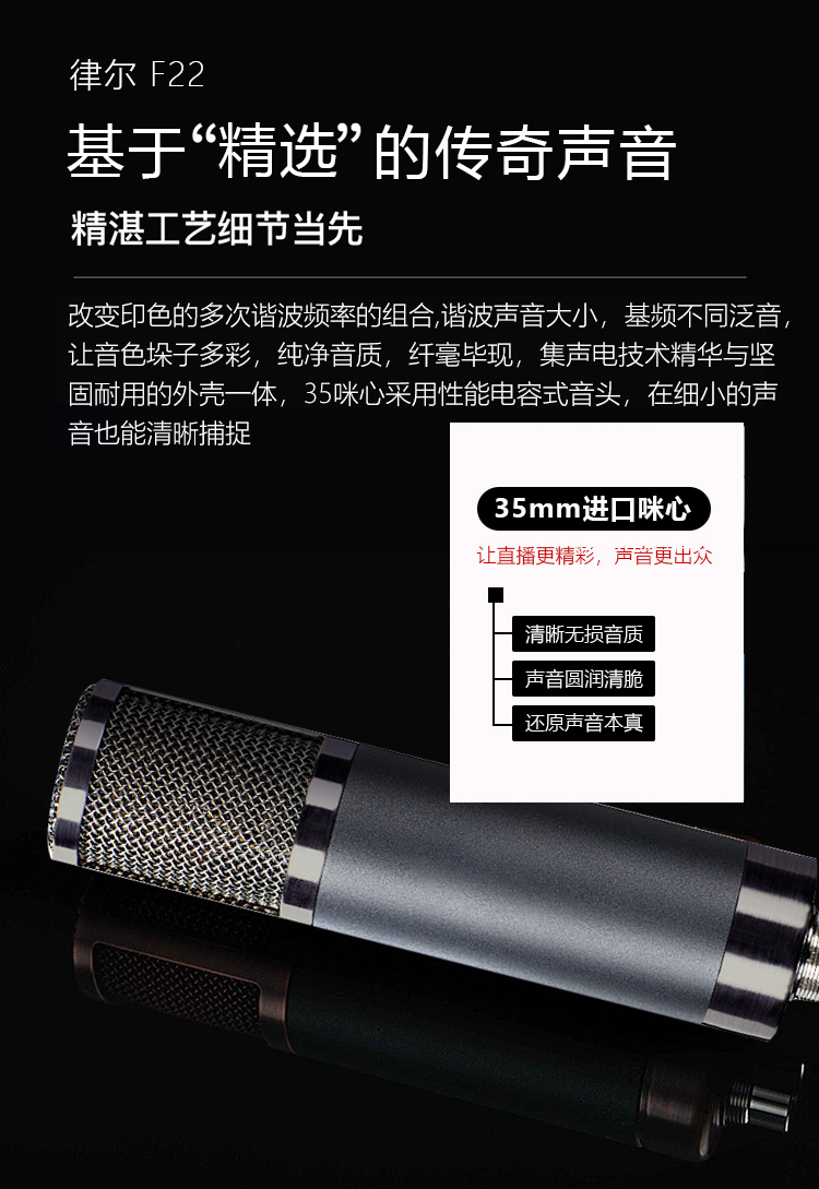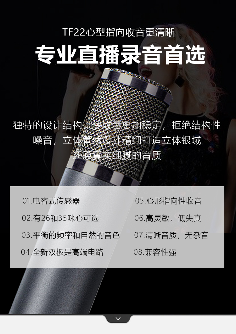 F22大振膜电容麦克风48V声卡录音专用话筒主播唱K歌专业直播设备