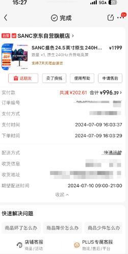 原生240hz 1080*1920分辨率 没有暗病坏点